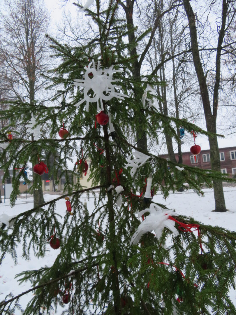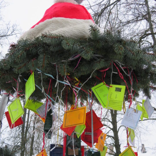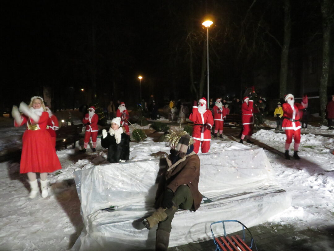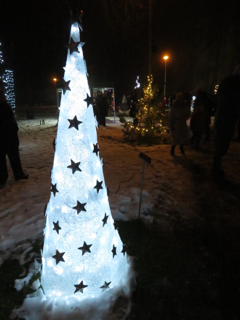 Įžiebti nebuvo paprasta, nes geriems, darbštiems nykštukams trukdė paniurėlis Girinis. Suminkštėjus jo širdžiai, šventinę eglutę pagrobė žaliaveidis Grinčas. Bet, kaip ir visose pasakose, taip ir čia viskas baigėsi taikiai ir alėją nutvieskė girliandų šviesos.