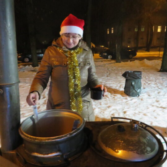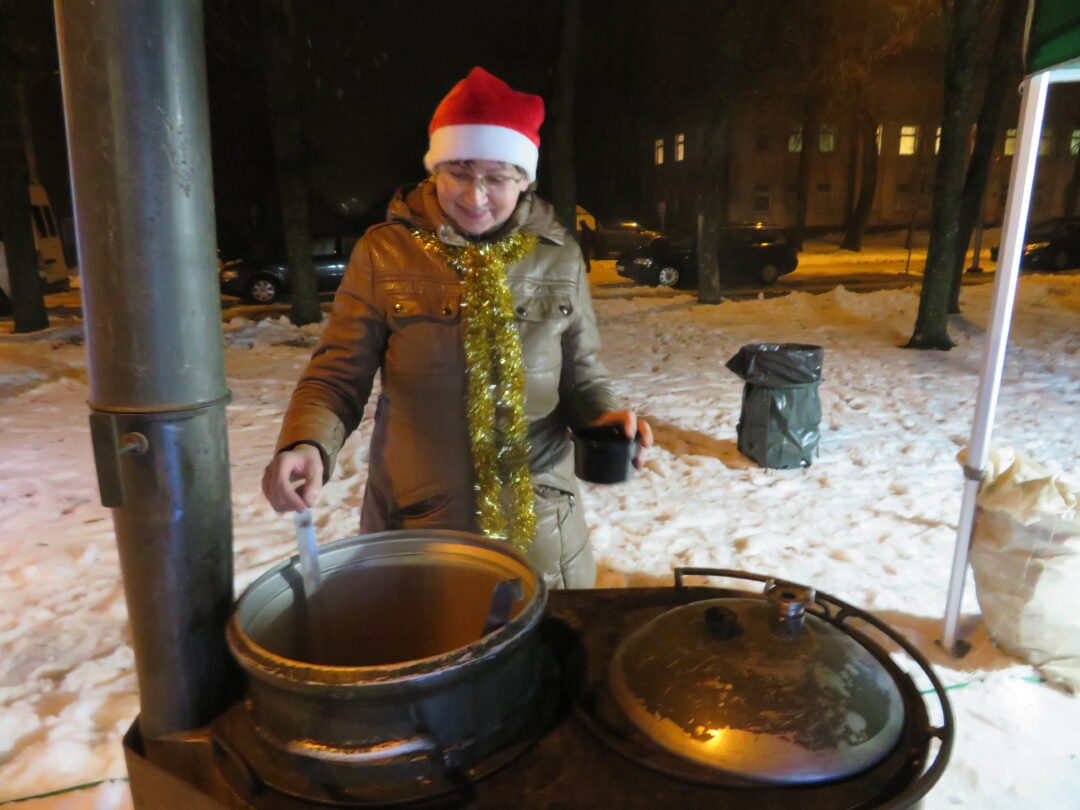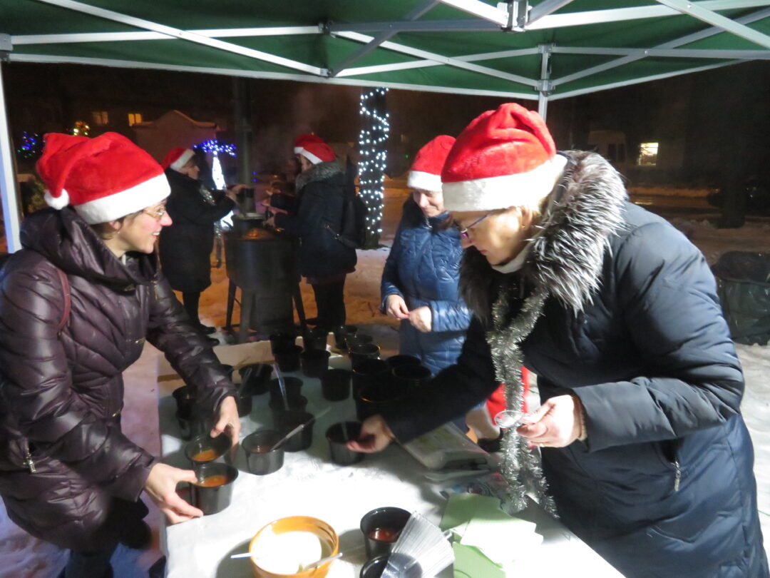 Gausus būrys pandėliečių ir svečių dar pasiliko pavakaroti skvere, pasigrožėti reginiu ir pasivaišinti Sriubiškių kaimo bendruomenės šeimininkių išvirta sriuba.