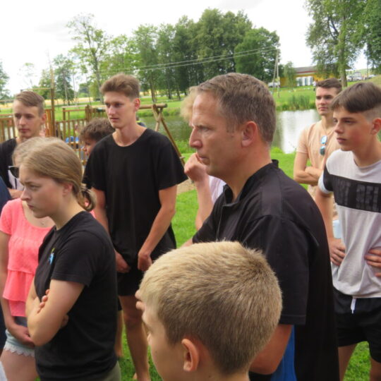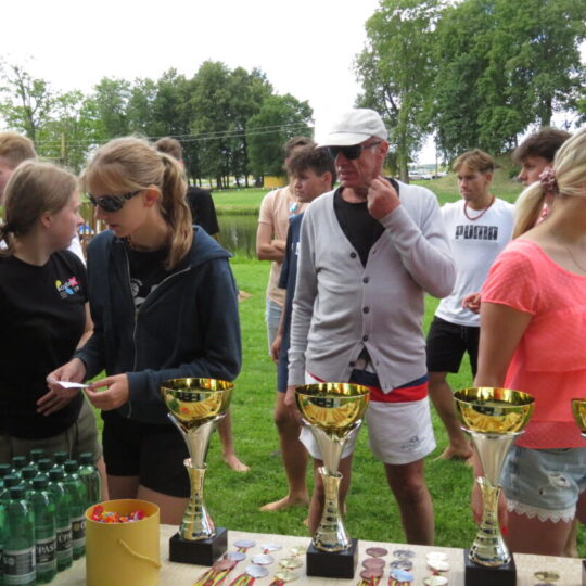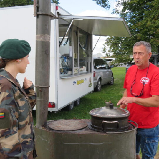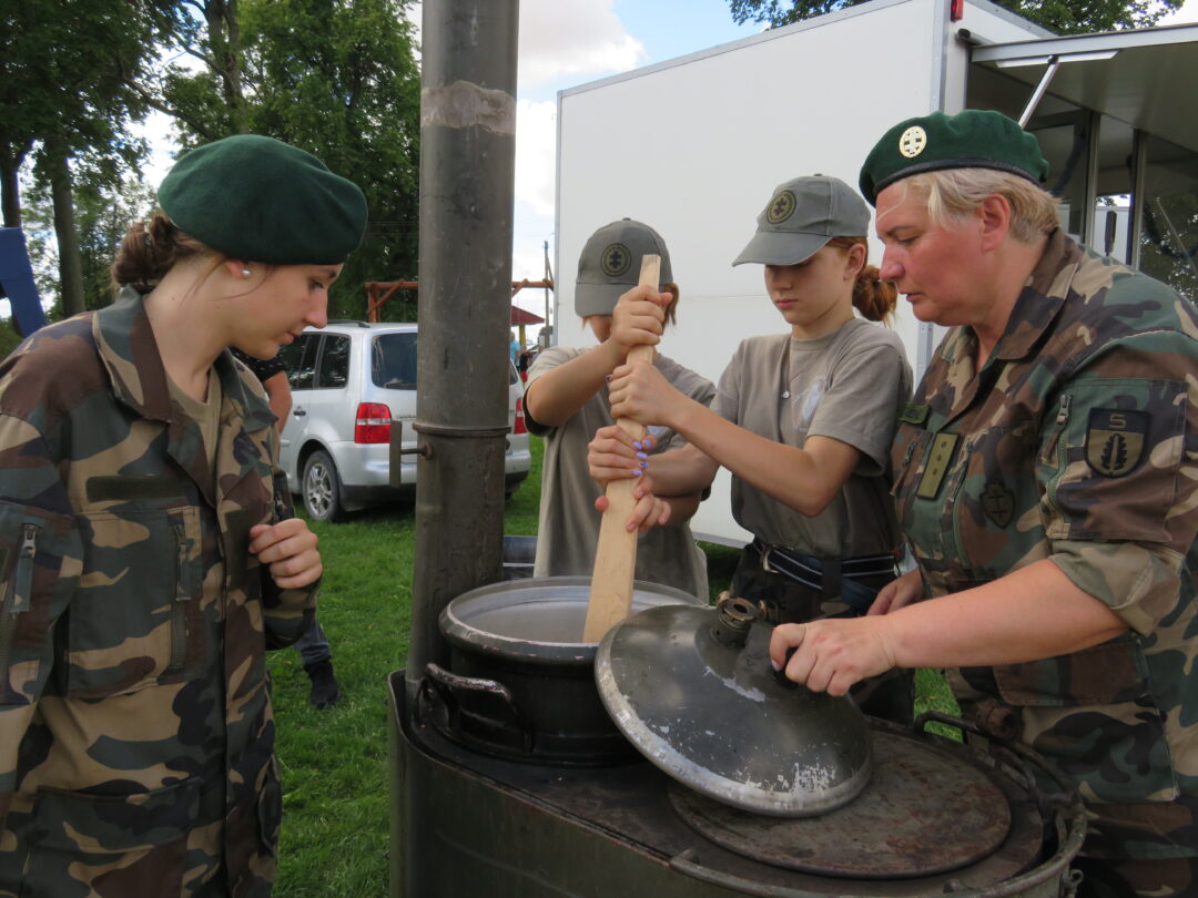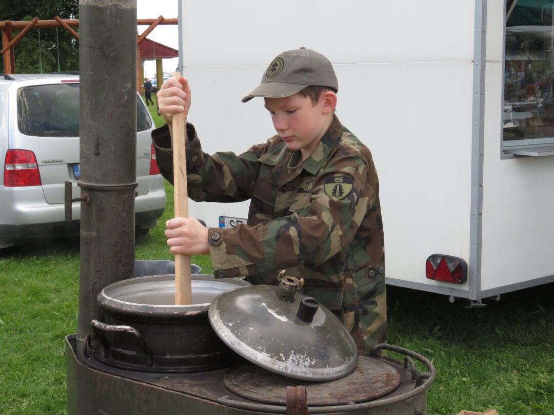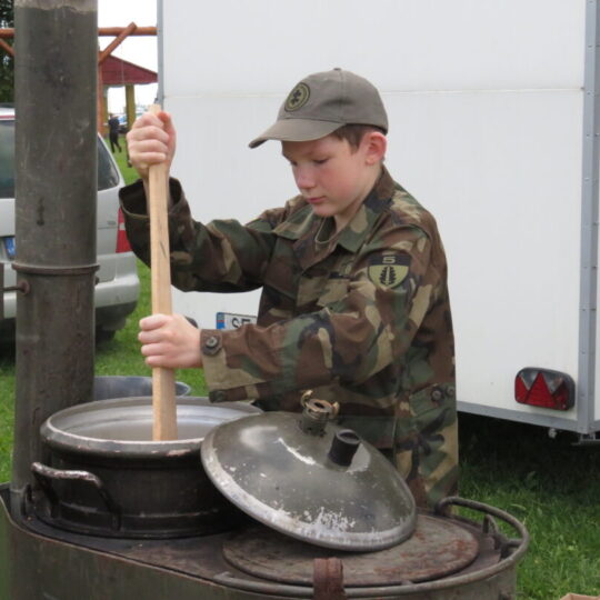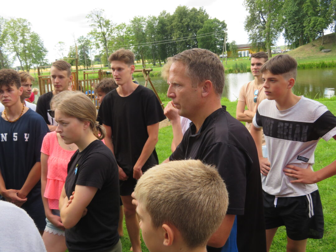 Nepavalgęs nepasportuosi. Nors pagautos žuvys paleistos atgal į tvenkinį, tačiau gardi žuvienė vis tiek buvo verdama. Prieš pietus prie didžiulio katilo virti įvairių kruopų košės su šamo mėsa stojo Pandėlio jaunieji šauliai.