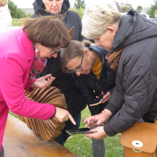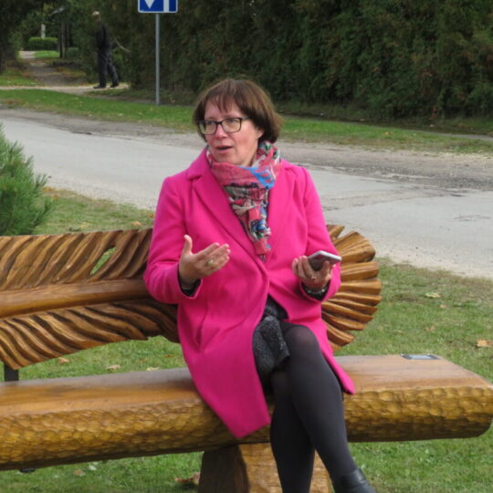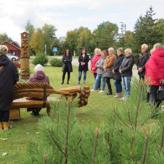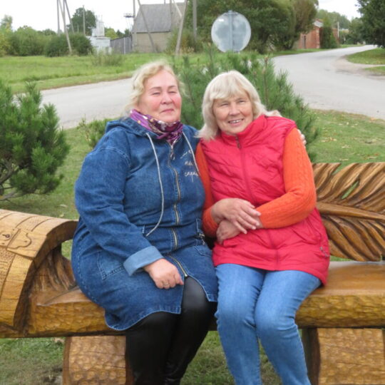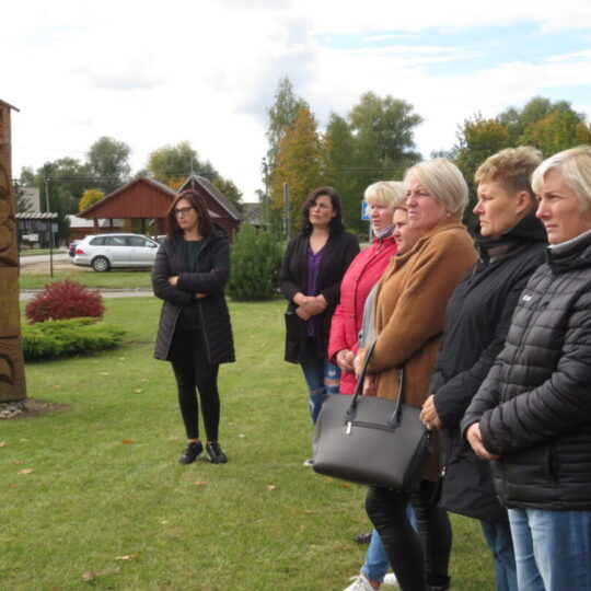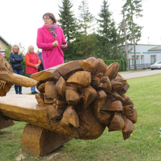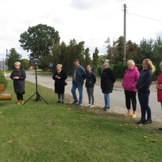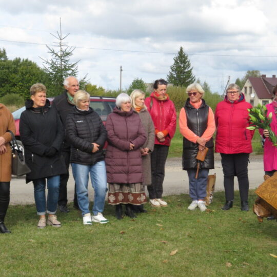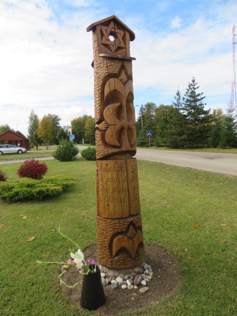 Gyvenvietės centrą jau nuo vasaros puošia du šiai poetei skirti medžio drožiniai – koplytstulpis ir suolelis, sukurti medžio skulptorių Vidmanto Zakarkos (Panemunėlis) bei Edvardo Tito (Panevėžio r.).