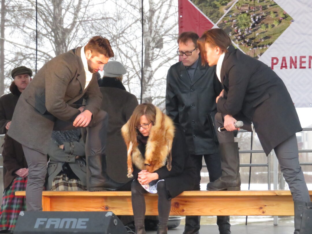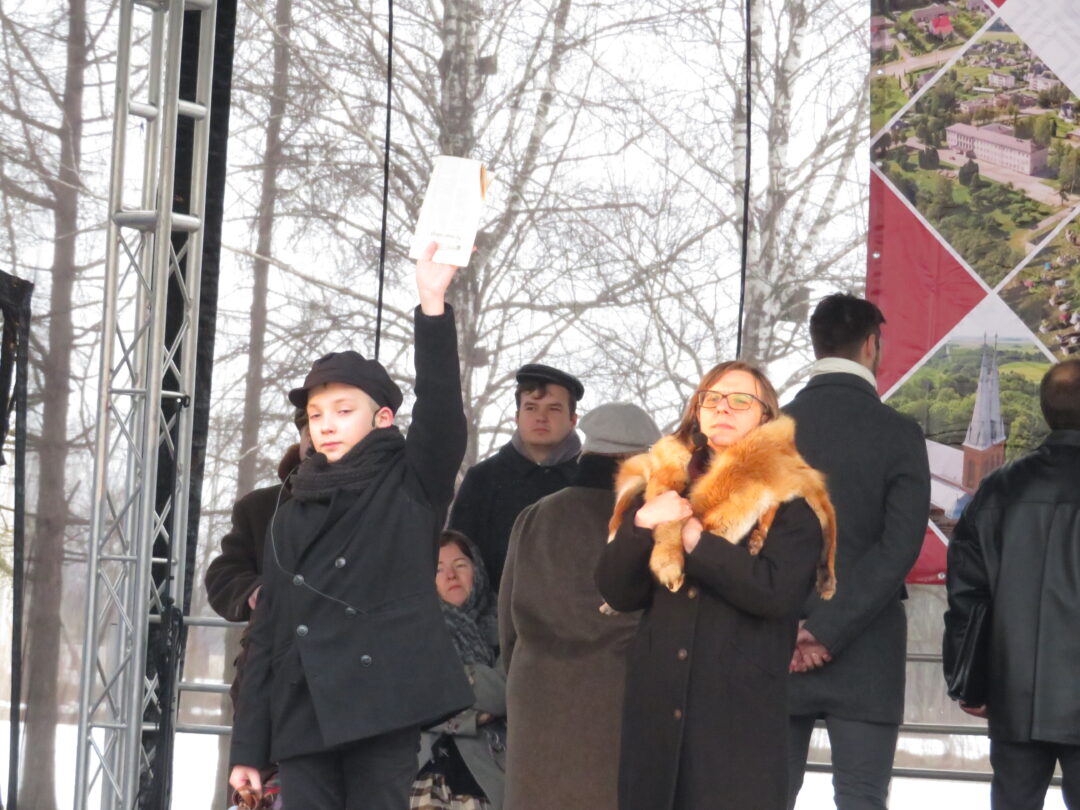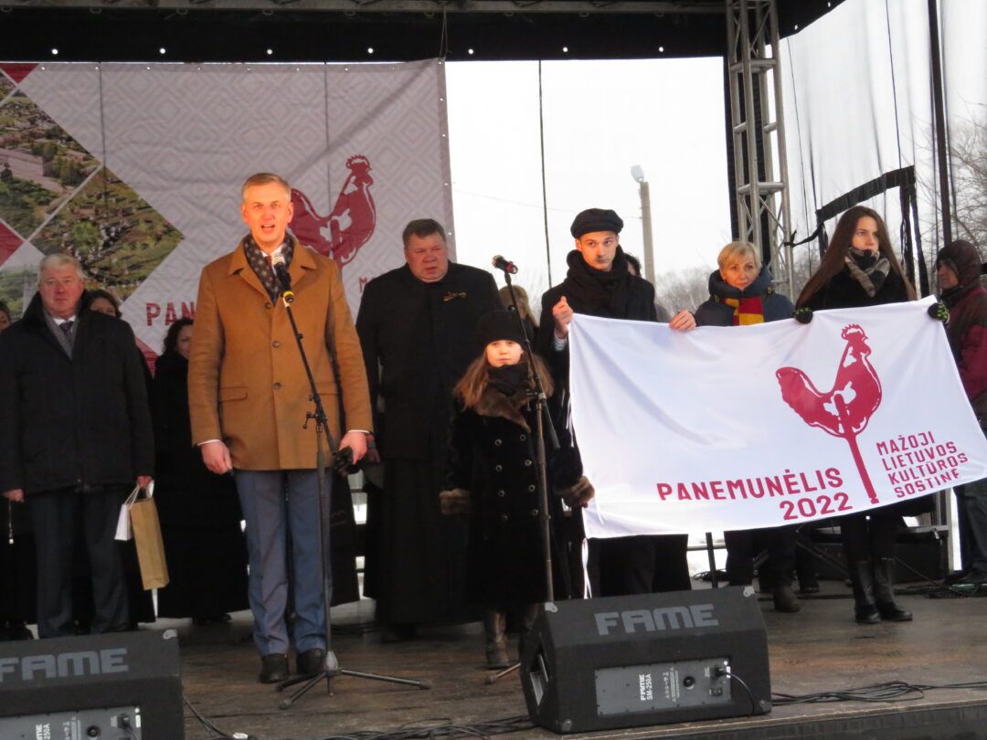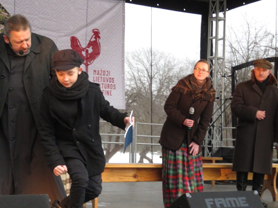 Pakelti Mažosios kultūros sostinės vėliavą patikėta seniūnei Daliai Dubenčiukienei. Tai padaryti pasirodė ne taip lengva, todėl prireikė vyriškos pagalbos. Plojimų aktoriams, atlikėjams ir nuo scenos kalbantiems svečiams buvo mažoka. Matyt, todėl, kad dauguma žiūrovų sėdėjo pirštinėti. Oras nelepino susirinkusiųjų. Nors ir šiltai apsirengę, žmonės gūžėsi nuo vėjo. Kailiniuotas ant scenos pasirodė ir dainininkas Deividas Norvilas.