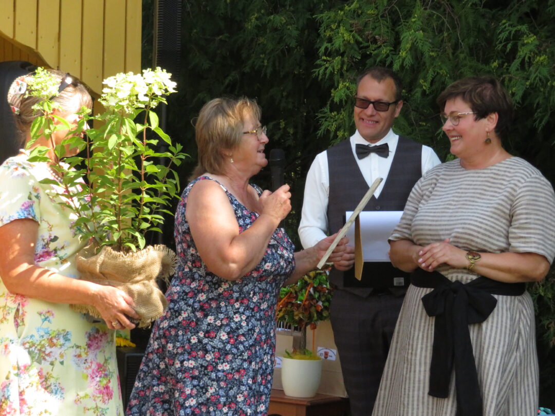 Po šv. Mišių organizatoriai surengė šventę bendruomenės namų kiemelyje ir apdovanojo senjorus, kurie per bendruomenės gyvavimo metus svariausiai prisidėjo prie jos veiklos. Tačiau pagerbtų žmonių sąrašas tuo nesibaigė. Vardindami kitus padėjėjus, renginio vedėjai jiems skyrė muzikines grupės „Šiaurės pašvaistė“ dovanas.