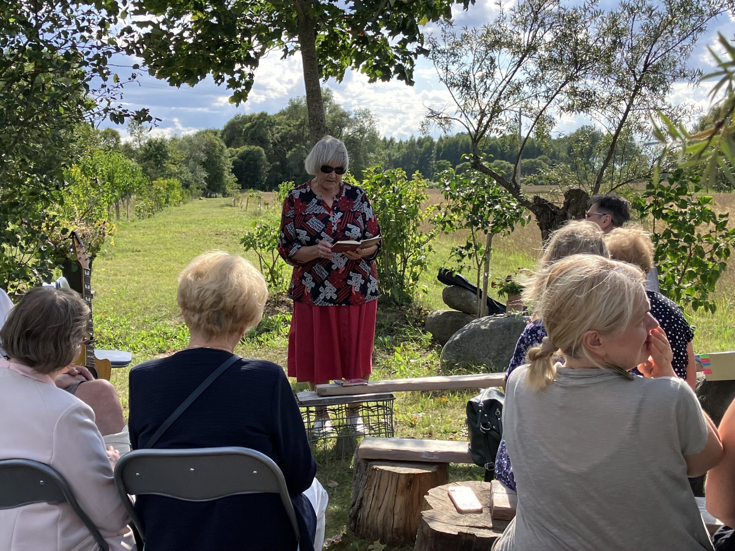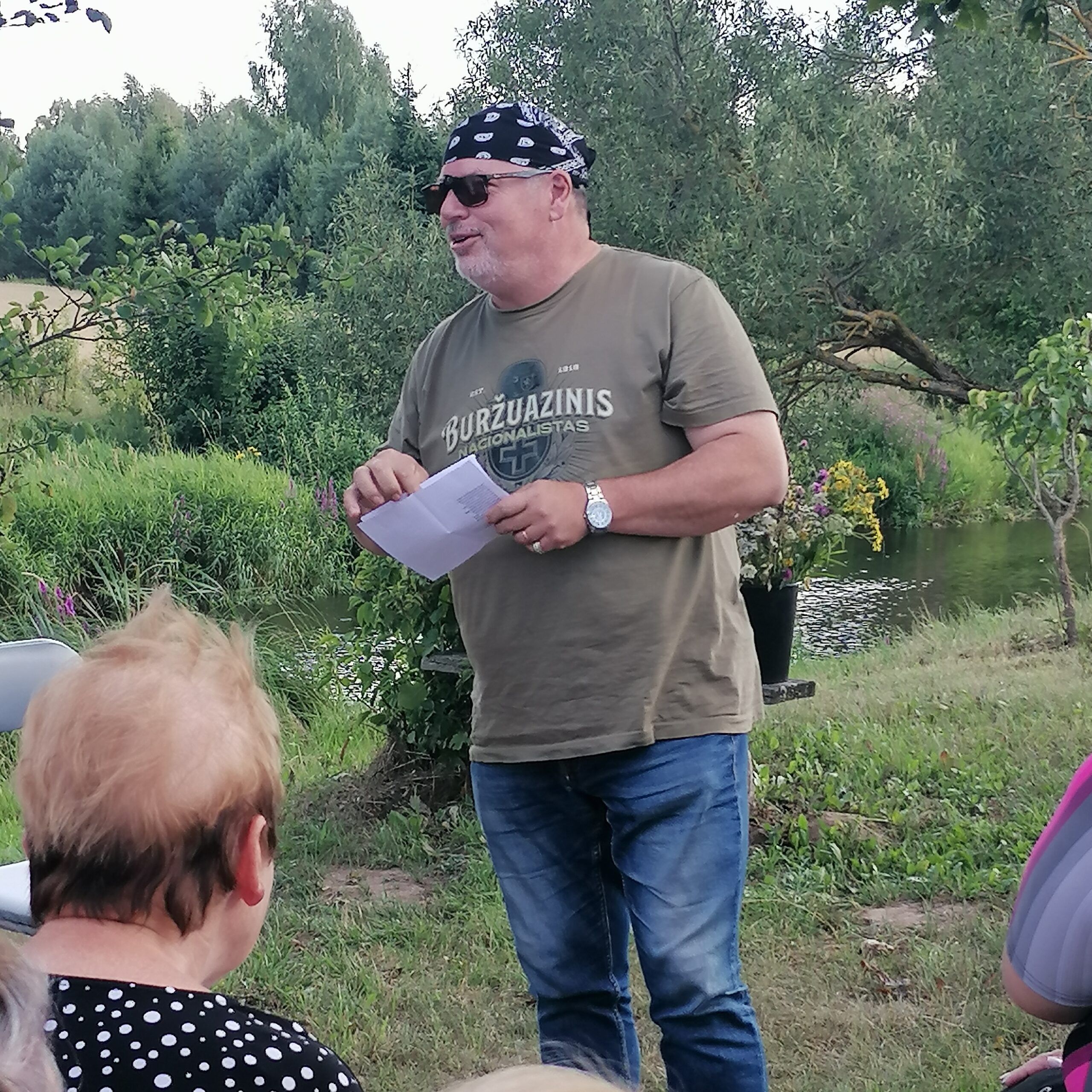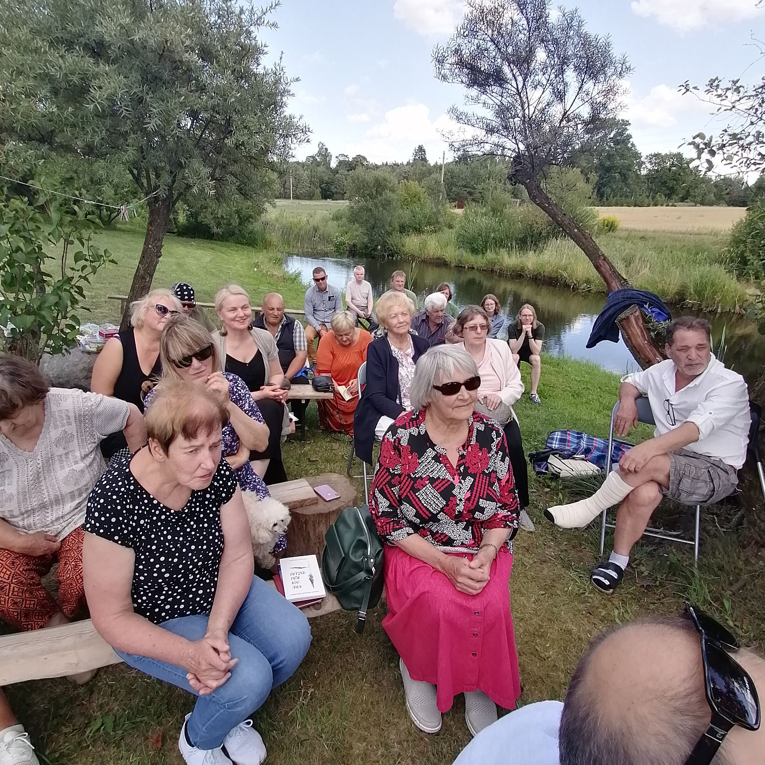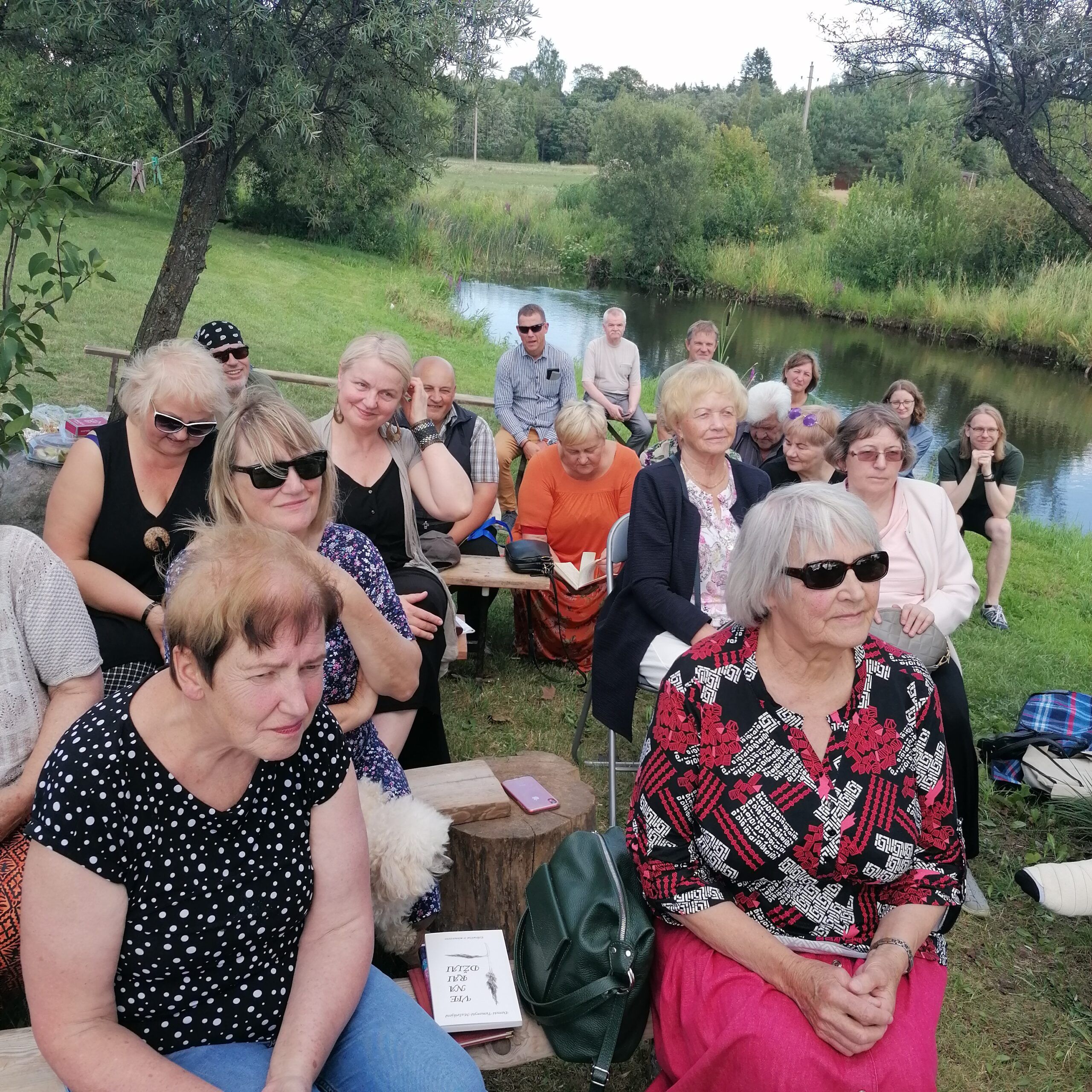 Poetams artimą aplinką, nukeliančią į svajų pasaulį, sukūrė jauki žaluma prie upės, akmenys, papuošti lauko gėlių ir senovinių darželių puokštėmis. Poezijos horizontus iliustravo suolai, permesti per kelmus, svyrantys medžiai, alyvų alėja… Na, o po poezijos posmų vynininkas Raimundas Nagelė surengė savo vynų degustaciją. Netrūko ir kitokių vaišių, subūrusių eiliuotojus tą liepos šeštadienį. Žinoma, visam tam šurmuliui pritarė ir kvietime į renginį paminėti žiogai smuikininkai.