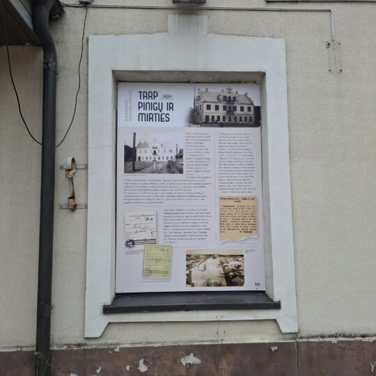 Tais pačiais 1928 metais, kaip ir Antanas Ščiuka, namą dabartinėje Kauno g. 7, pasiėmęs paskolą iš Lietuvos banko, pasistatė darbštaus ūkininko Mato Kielos šeima. Pasakojimą apie šio pastato istoriją pavadinome „Tarp pinigų ir mirties“ neatsitiktinai. Jau po metų naujakurių džiaugsmus aptemdė žiauri tragedija, apie kurią rašė net Lietuvos spauda. Apie tuometinį įvykį, kodėl pastatas tapo banko nuosavybe, ir kitas istorijas surasite specialiai parengtame stende.
