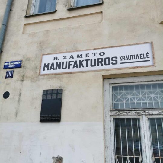 „Nuo miltų ir knygų iki grotuotų durų“ – taip pavadintą informacinį stendą parengėme ant Nepriklausomybės a. 10-ojo namo, vietinių vadinamo namu su bokšteliais. Tai Rokiškyje gerai žinomų įtakingų žydų tautybės verslininkų Zametų šeimos namas. Rokiškyje viešėjusio giminės palikuonio Ariel Cahen dėka sužinojome apie juos daugiau.