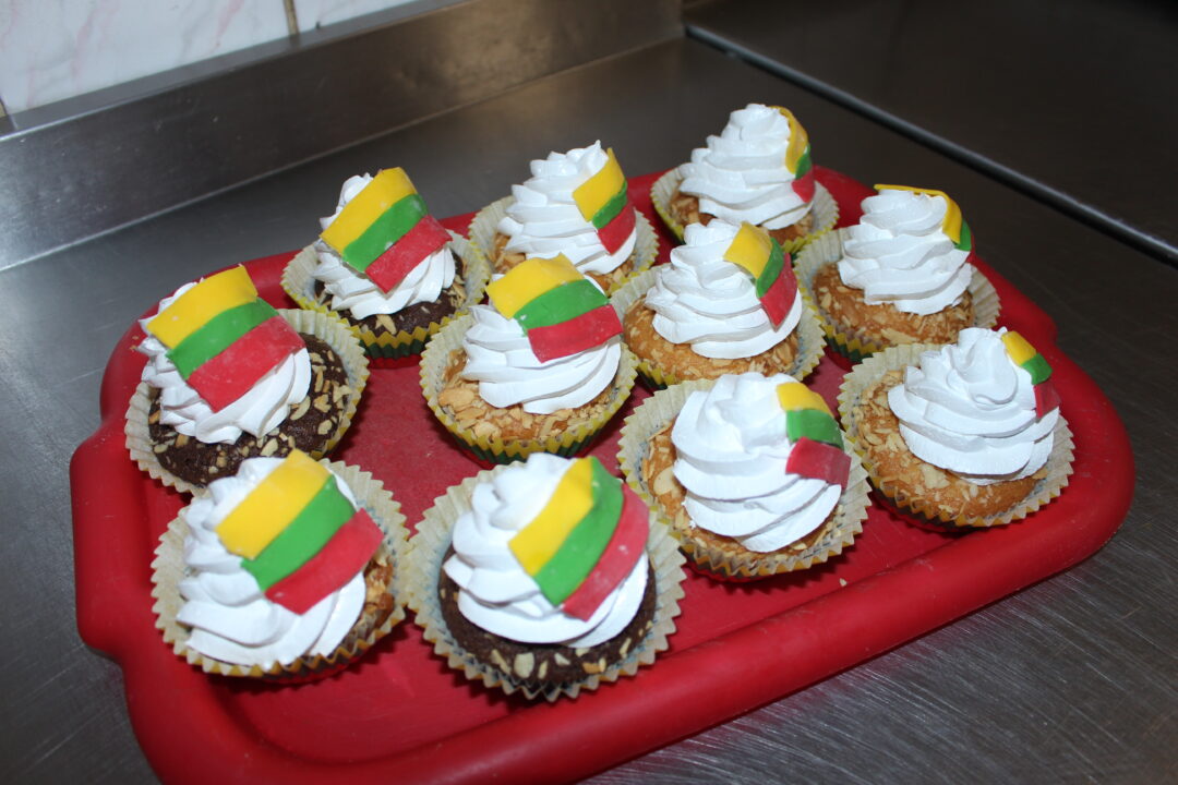 Kas siūloma Vasario 16-ajai? Šiuo metu įmonės parduotuvės vitrinose esantys kepiniai stebina tiek formomis, tiek spalvomis ir papuošimais. „Tautinių švenčių progomis įmonės parduotuvėje pirkėjams siūlome meduolinių širdelių, padengtų vėliavos spalvų mase, ir kitokių išpuoštų skanėstų. Iš klientų sulaukiame individualių prašymų iškepti vėliavos formos tortų su užrašais, pavyzdžiui, „Aš myliu Lietuvą!“ – vardijo gamybos vedėja Laima Guzikauskienė. Žinoma, tokie užsakymai atima marias laiko, bet labai pradžiugina žmones. Pirkėjai „trispalvių“ kepinių galės įsigyti ir sekmadienį.
