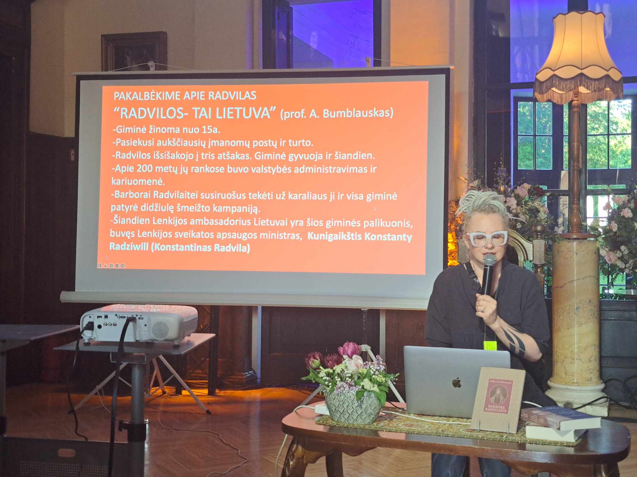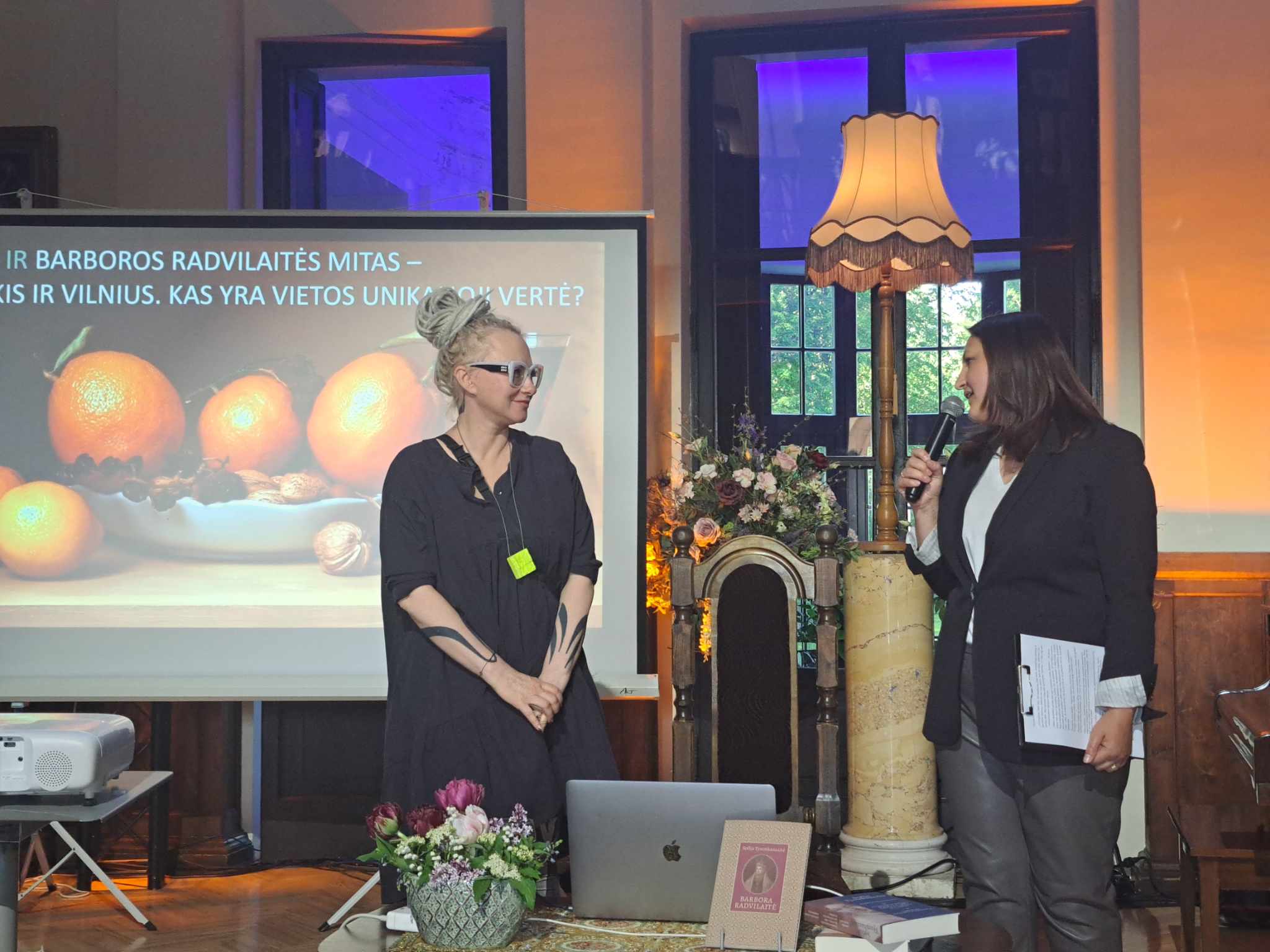 Ji kūrė ir žinomų politikų įvaizdį, o dabar kuria juvelyrikos, avalynės, interjero, baldų dizainą, tapo, vysto dizaino prekės ženklų dizaino koncepcijas ir netgi kuria muziką… Norintys paklausyti paskaitos apie Renesansą ir Barborą Radvilaitę sunkiai tilpo dvaro menėje, tačiau dar sudėtingiau buvo apžiūrėti parodą „Slapta meilė: nuo Barboros iki Sofijos“. Nors parodos kuratorės J. Janus balsas girdėjosi gerai, tačiau mažoje erdvėje dažnas stebėjo tik priešais esančiųjų galvas ir nugaras. Tad geriausiai išeitis šiuo atveju buvo pasidairyti parodoje savarankiškai. Barboros Radvilaitės gyvenimo ir meilės istorija buvo papasakota išradingai: paminėti laikmečio bruožai, istorijos faktai, tačiau bandyta tam suteikti šiuolaikiškumo – pavyzdžiui, J. Janus jaunąją karalienę pavadino to meto influencere. Istorijos apie Renesansą kontekste laukė ir netikėtumas. Prieš prisistatant viešniai iš Vilniaus J. Janus, muziejaus emeritės ženklas įteiktas muziejininkei, ilgametei įstaigos direktorei Nijolei Šniokienei.