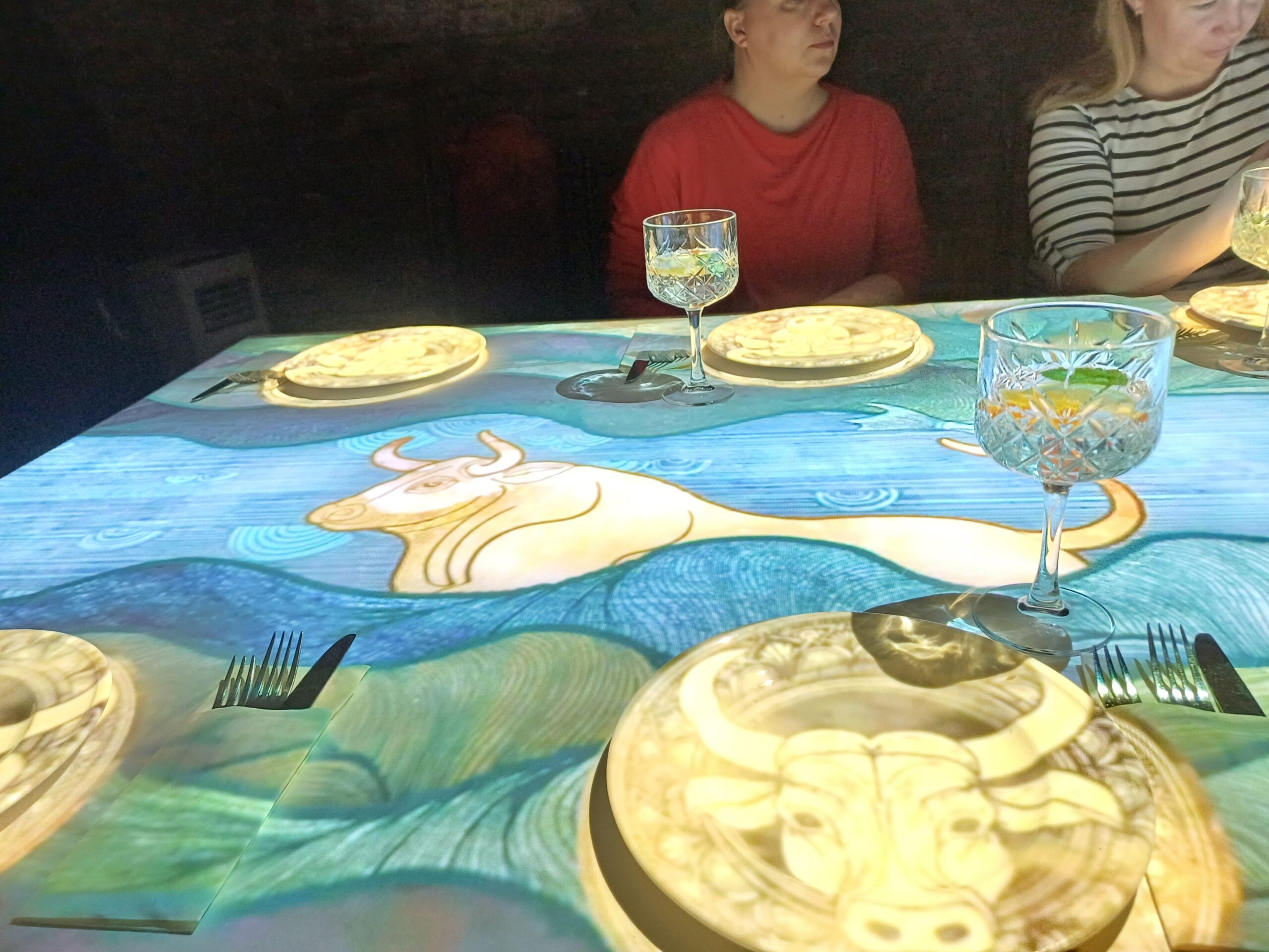 Užsisakiusiems degustacinę vakarienę bus ne tik pasiūlyti pačių dvaro virtuvės šeimininkių Neringos bei Dalios sukurti prabangūs patiekalai iš lašišos ar vištienos bei desertas. Ant ilgo balto stalo prieš savo akis valgytojai išvys originalų audiovizualinį skaitmeninės grafikos kūrinį bei išgirs pasakojimą apie dvaro istoriją nuo seniausių laikų iki šių dienų. Grafiką šiam reginiui sukūrė vilniškiai, IT įmonė BMK, kuri, pasak B. Dapkienės, džiaugėsi bene pirmuoju tokiu kūriniu Baltijos šalyse ir naudos jį pristatyti savo kuriamai produkcijai visoje Europoje. Kuriant šį darbą konsultuotasi su istorikais, kalbininkais, parengtas ir tekstas anglų kalba, orientuotas į svečius iš užsienio.