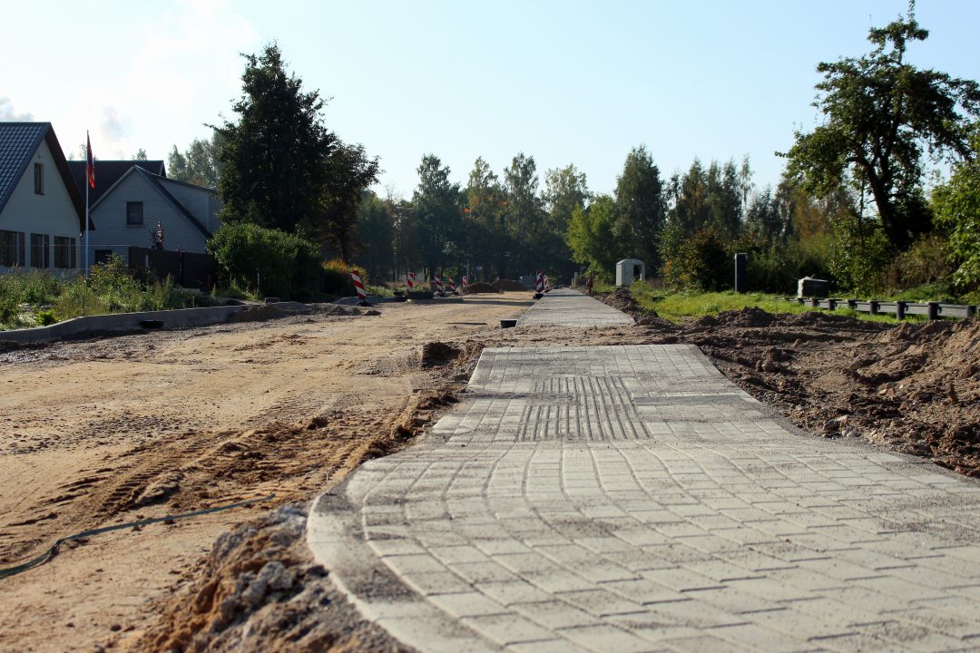 Nesnaudžia ir Kauno g. rekonstruojantys darbininkai: beveik visoje remontuojamoje kelio atkarpoje vinguriuoja trinkelėmis nukloti šaligatviai.