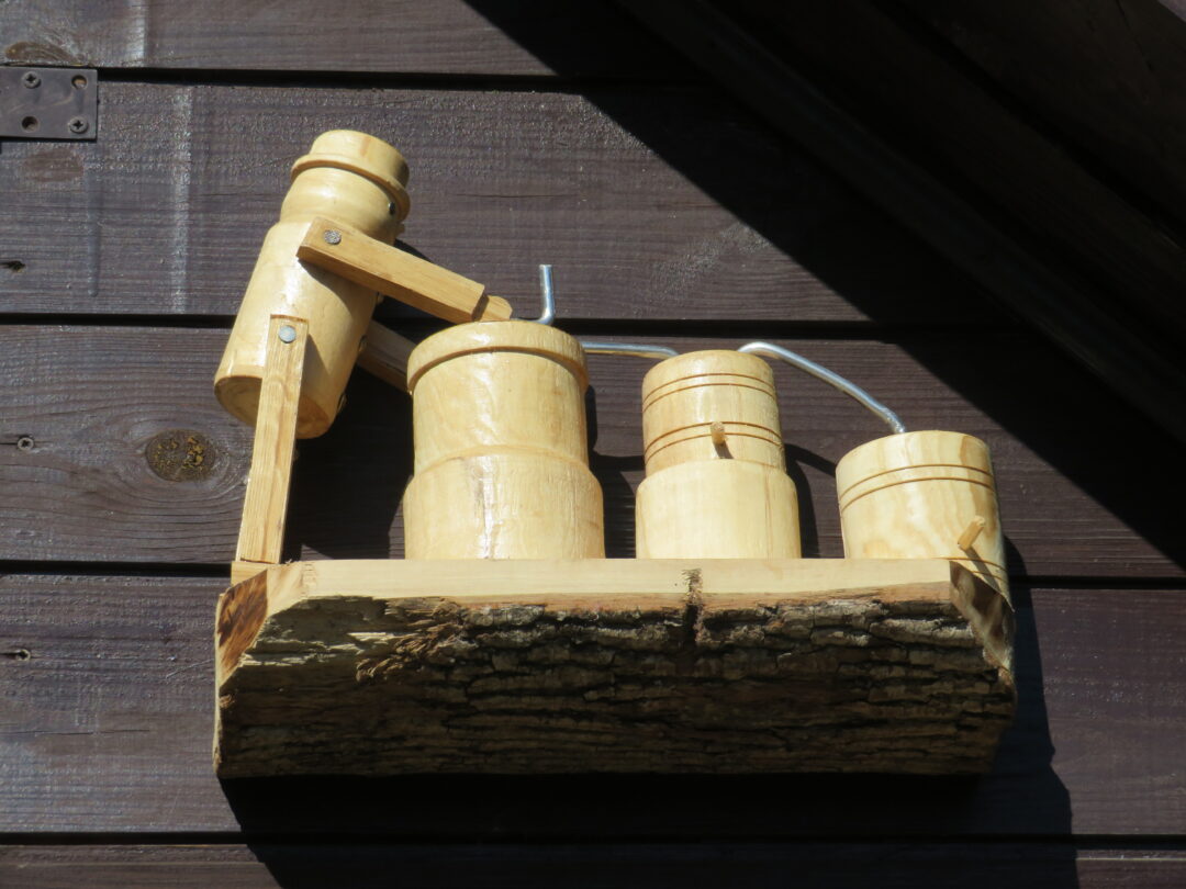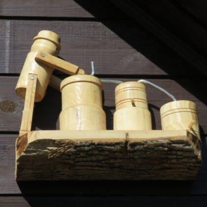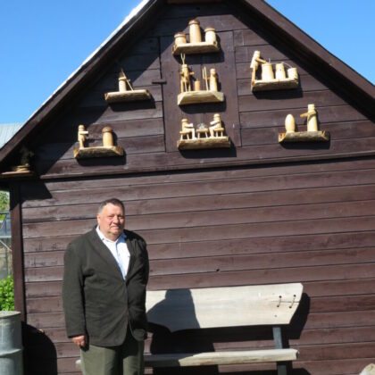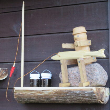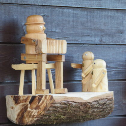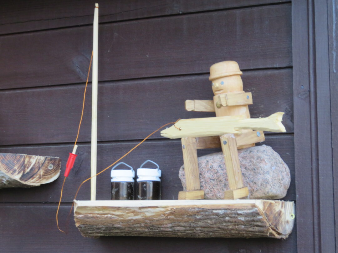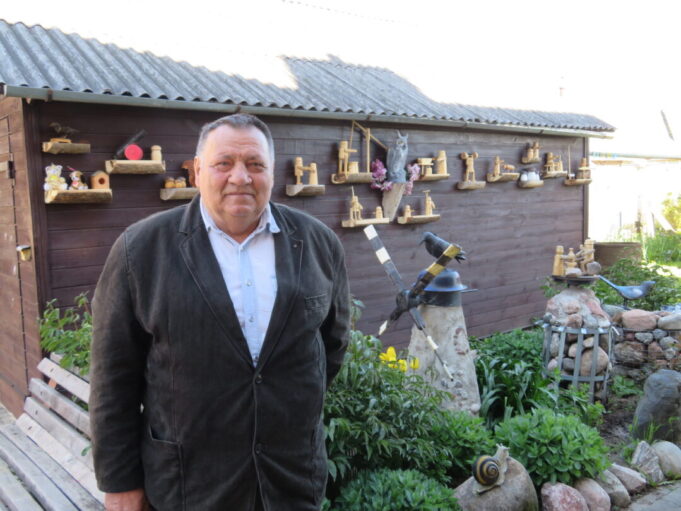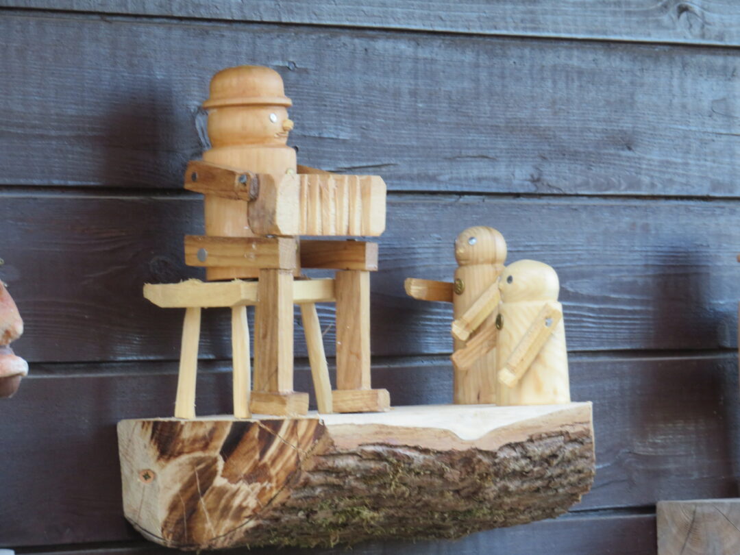 Rokiškėno Juozo Rimanto Kairio kieme stovinti pirtis ir garažas su malkine apkabinėti lentynėlėmis, pagamintomis iš nudailintų pliauskų. Matydamas, kas ant jų, negali nesišypsoti. Ant kiekvienos išdėlioti paties šeimininko išdrožti, ištekinti medinukai. Po vieną, po du ar keletą. Visi jie vaizduoja tam tikras istorijas. Žodžio kišenėje neieškantis J. R. Kairys pristatinėja: „Čia grybautojas surado baravyką, čia gimtojo kaimo svirtis, kaimiški darbai, meškeriojantis kaimynas, patranka iš pasakos, kurioje kariavo žirniai su grybais.“