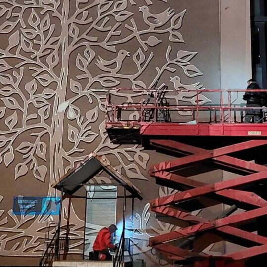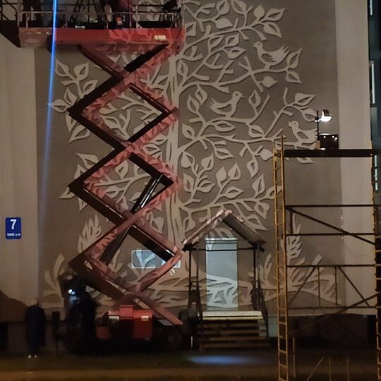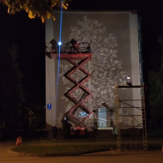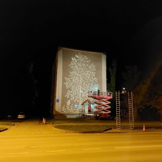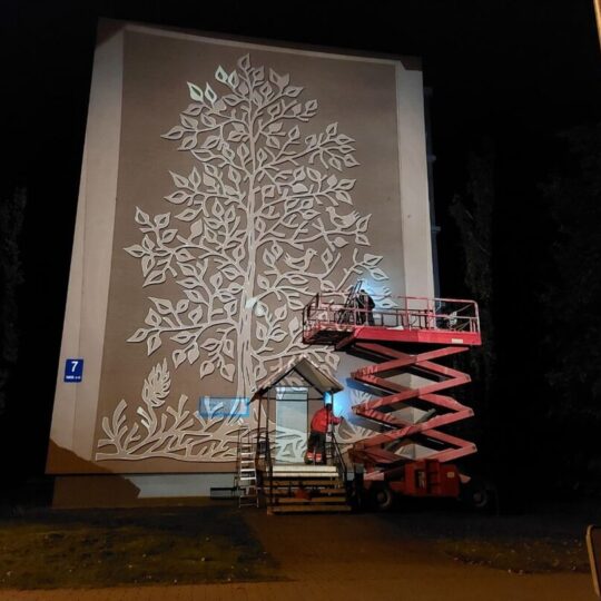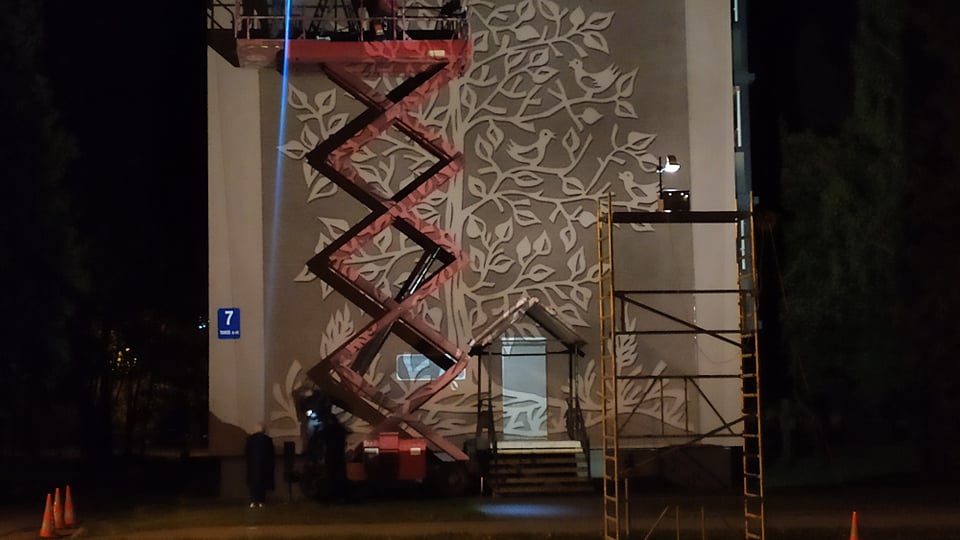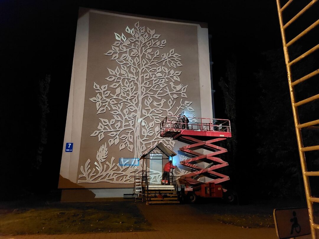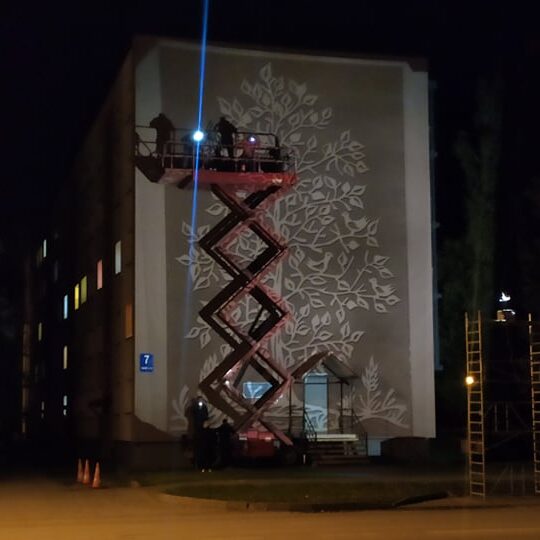 Tautodailininkės Gitos Kolosovienės karpiniu medžio motyvais pradėjo puoštis dar vienas Taikos g. 7-uoju numeriu pažymėtas daugiabutis. G. Kolosovienės karpinio vizualiką daugiabučiui pritaiko ir piešia žinomas šalies menininkas, kaunietis Tadas Šimkus. Jo unikalūs darbai puošia ir Juodupės pastatus.