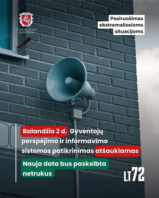 Dėmesio! Šią savaitę planuotas gyventojų perspėjimo ir informavimo sistemos patikrinimas – ATŠAUKIAMAS.