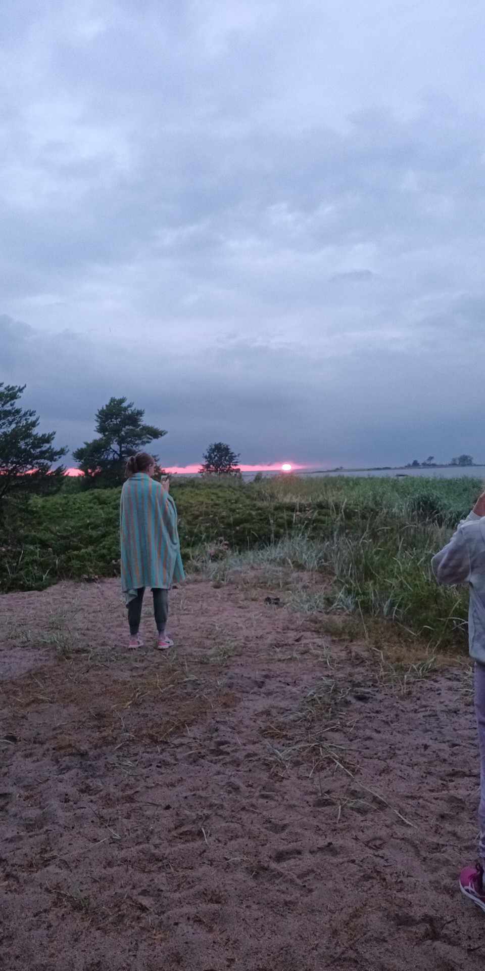 Mūsų nakvynės vieta ypatinga. Tai – šiauriausias Estijos taškas. Palapines pasistatome prie pat jūros, nors stipriai lyja, mes, kaip ir visa Lietuva, tą vakarą devintą valandą giedame mūsų šalies himną. Paskui, žinoma, maudynės, o šaltas jūros vanduo nė vieno negąsdina.
