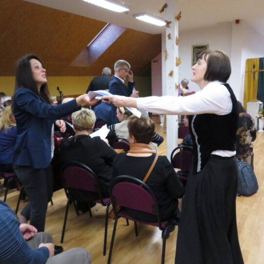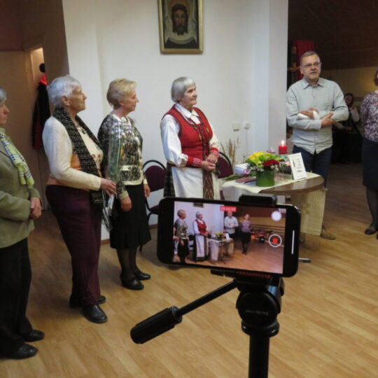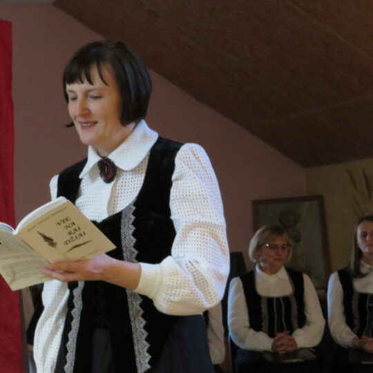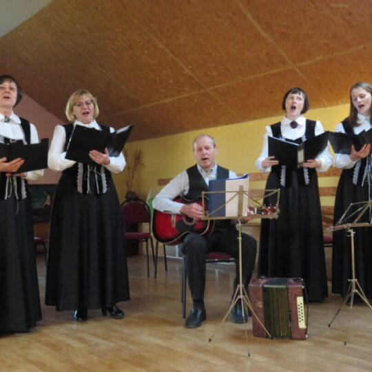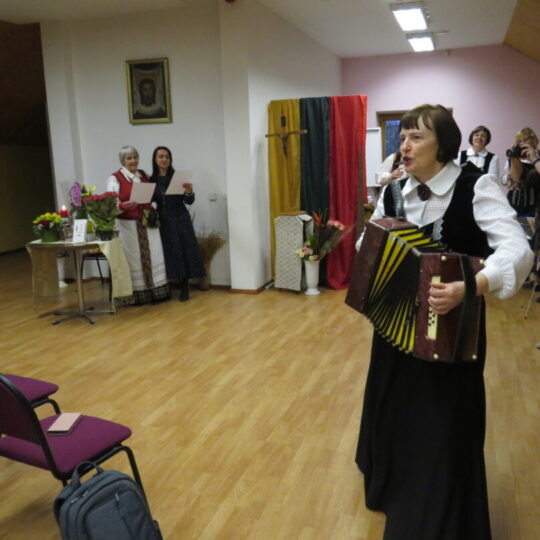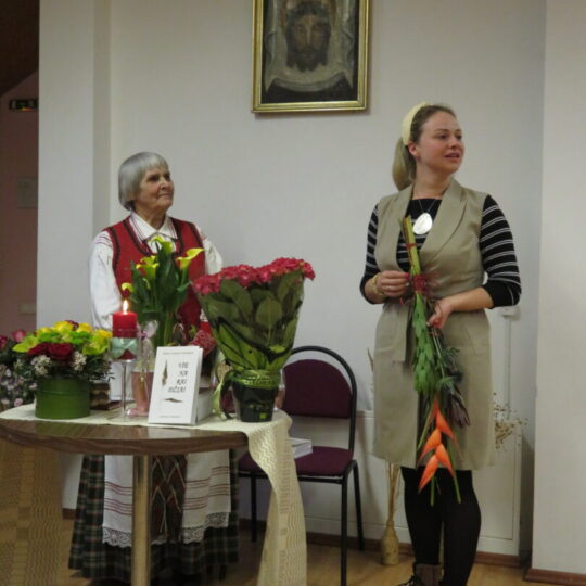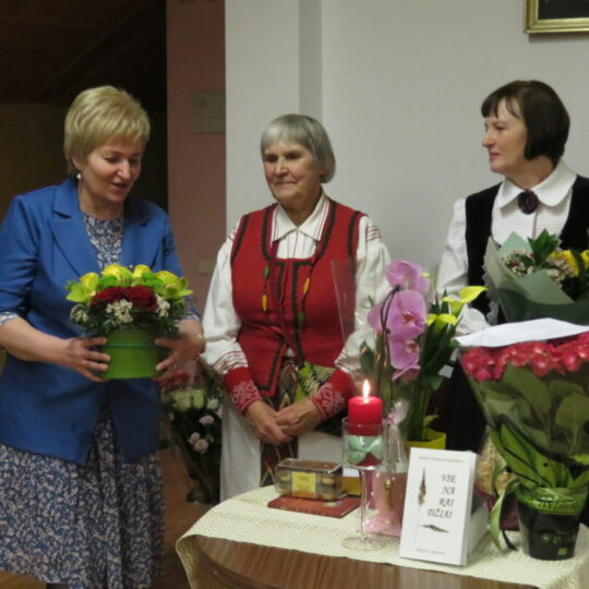 Vakaro dalyviai skaitė D. Tumonytės-Mažeikienės eiles, puikią nuotaiką kūrė Rokiškio R.Lymano muzikos mokyklos vokalinis ansamblis „Gelmės“.
