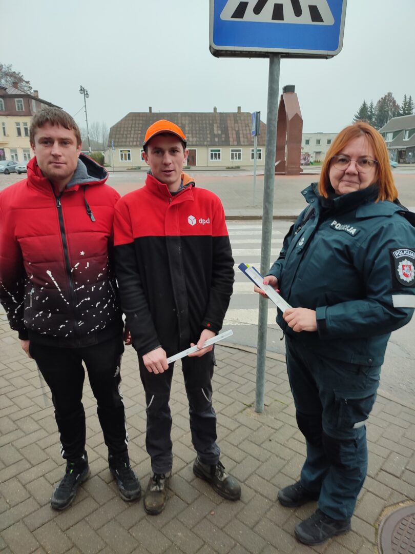 Akcijos metu dovanojome pėstiesiems atšvaitus, stengėmės prevenciškai atkreipti pėsčiųjų dėmesį, primindami jų pareigas, kad nelaimingų atsitikimų gatvėje būtų kuo mažiau.