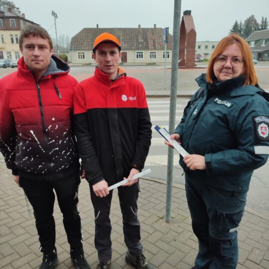 Lapkritis – tamsiausias mėnuo. Bendraudami su gyventojais primename, kaip svarbu naudoti šviesą atspindinčius elementus (atšvaitus, ryškiaspalves liemenes, žibintus…) tamsiuoju paros metu, ypač neapšviestuose keliuose.