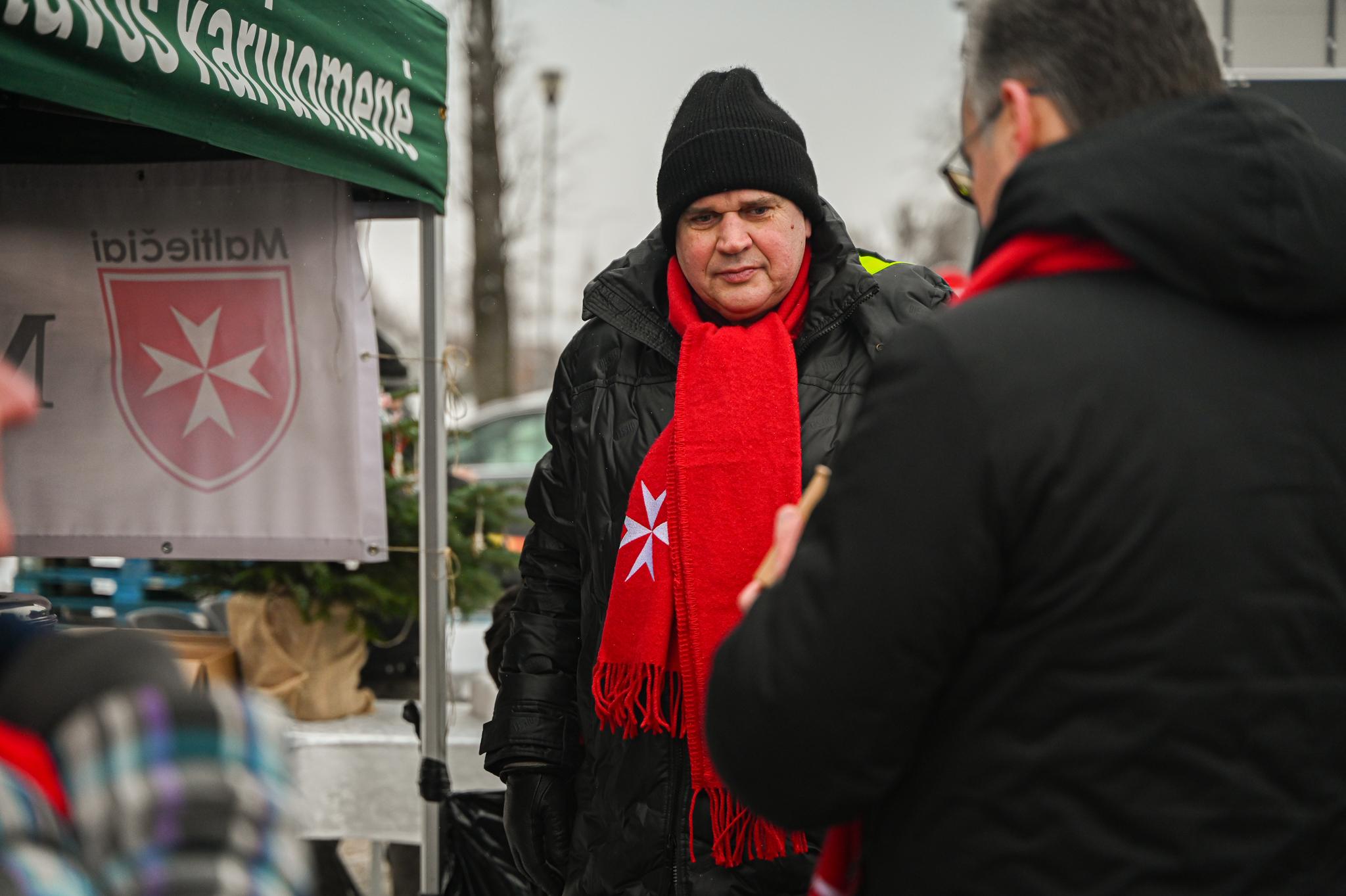 Dar prieš devintą ryto Alvydas jau laukė pasikrovęs 25 litrinius termosiukus į Maltos ordino kryžiais pažymėtą mašiniuką. Ir ne tik termosiukus – prieš Kalėdas visi tradiciškai dosnesni. Tad jau susėdus į mašiną Alvydas džiaugiasi, kad ūkininkas Jonas nuo Jūžintų paaukojo visiems globotiniams po kibirėlį medaus, o panorusi likti nežinoma močiutė numezgė po mažytį maišelį-kojinaitę, į kurį įdėjo lauktuvių. Ir dar atėjusi atsiprašinėjo, kad savo dovanų pati nepajėgs atnešti. Tokių geradarių, džiaugiasi maltiečių vadovas, niekad nepritrūksta, ypač prieš didžiąsias metų šventes.