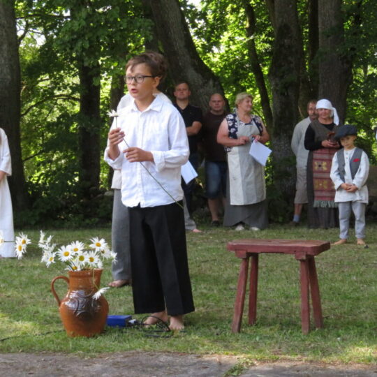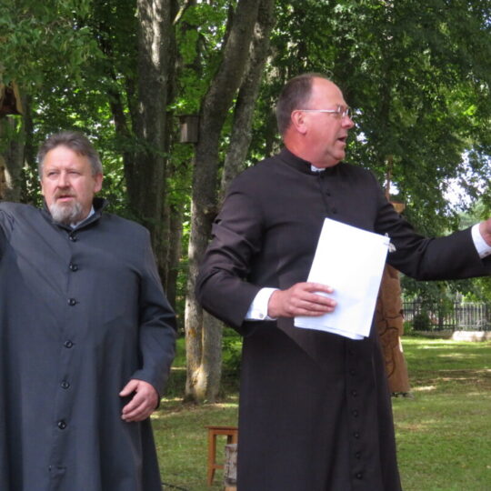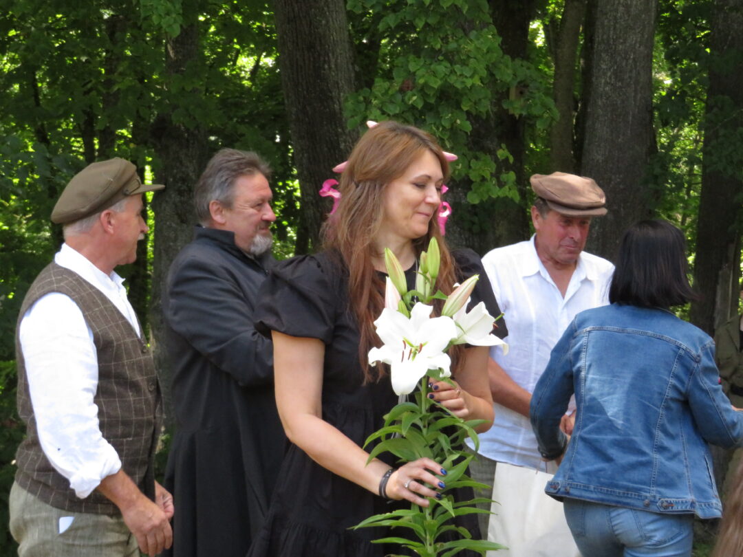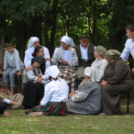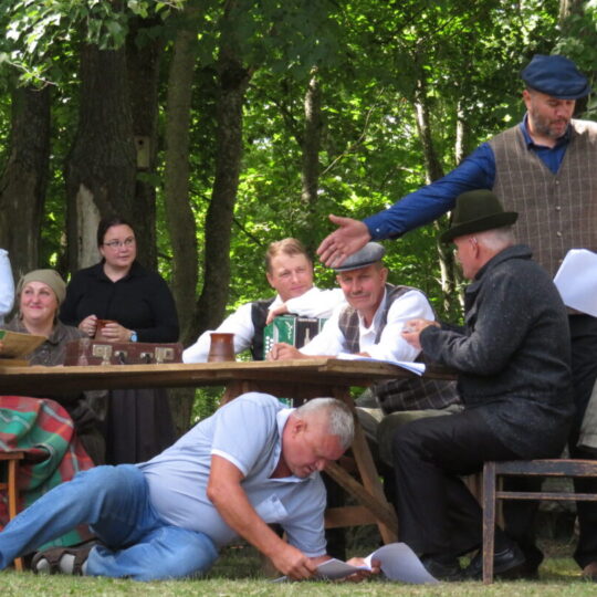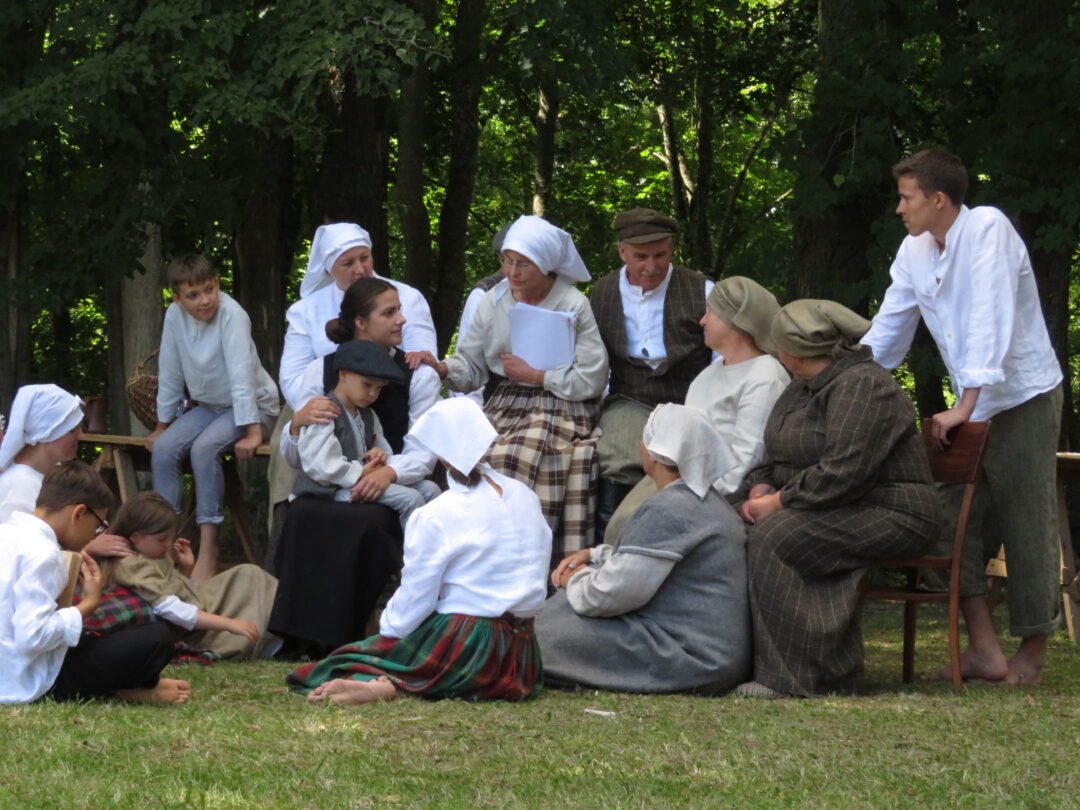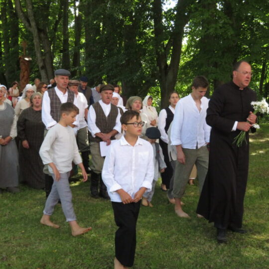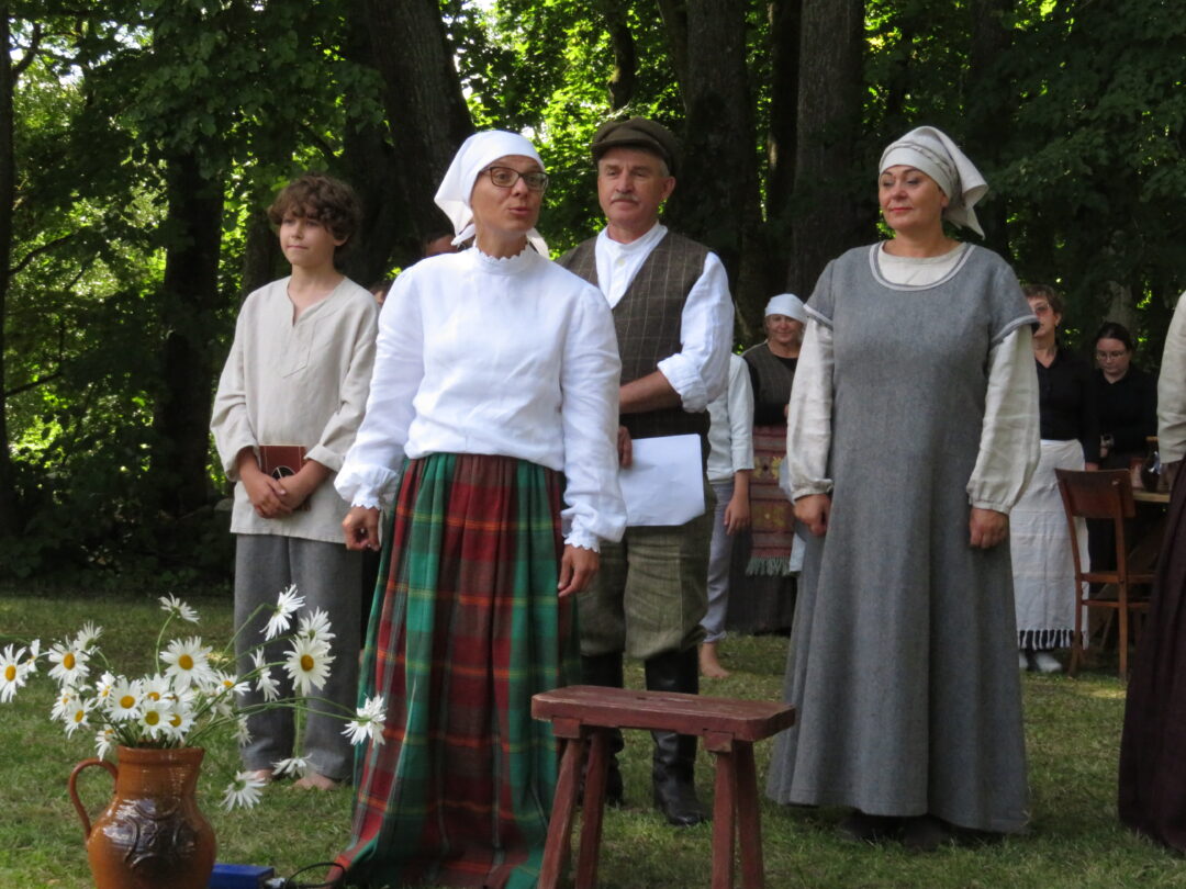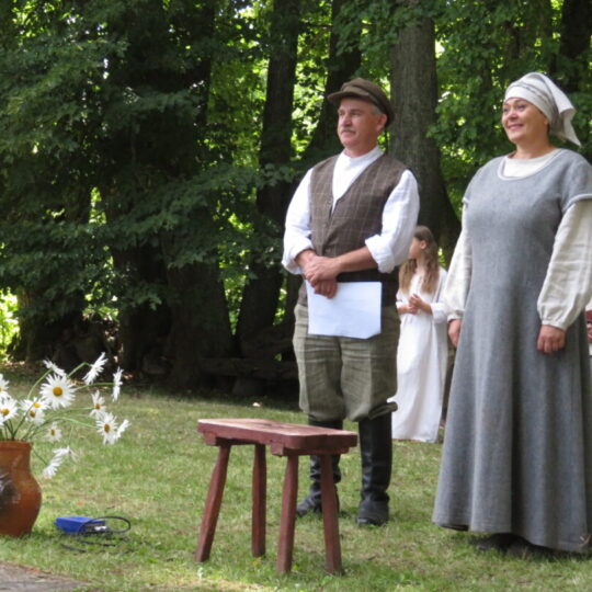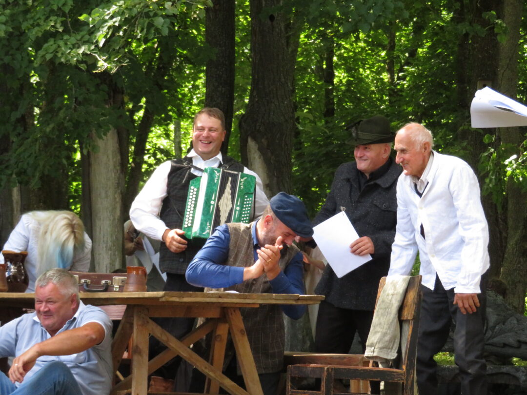 Atsitiktinis praeivis, šeštadienį užsukęs prie Panemunėlio miestelio bažnyčios, būtų sutrikęs – kokie nematyti du kunigai lūkuriuoja tarp senų liepų? Tik akylesnis būtų įžvelgęs stulbinantį vieno sutaną vilkinčio žmogaus panašumą į gerai žinomą panemunėlietį muzikantą Giedrių Viduolį. Nieko nuostabaus, nes šeštadienį Panemunėlyje, prie senosios klebonijos, prasidėjo XVIII Rokiškio rajono kaimo mėgėjų teatrų festivalis „Seklyčia“, o teatralizuotoje kompozicijoje „Lietuviško teatro lopšys“ G. Viduoliui teko vaidinti kunigą, rašytoją J. Tumą-Vaižgantą, kuris Panemunėlyje kažkada iš tikrųjų vedė vieną teatro repeticiją. Buvo daug improvizacijos ir skanaus juoko, kadangi G. Viduolis kai kuriuos aktorius pasirinko iš žiūrovų.
