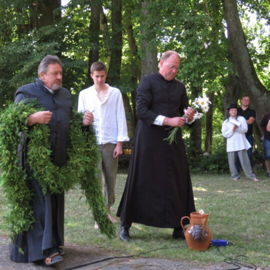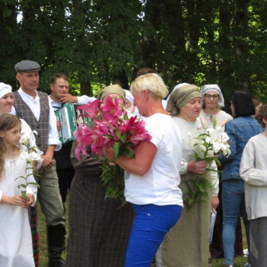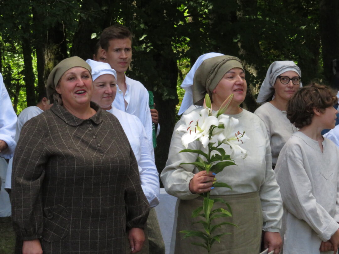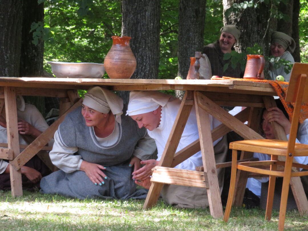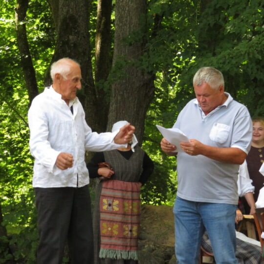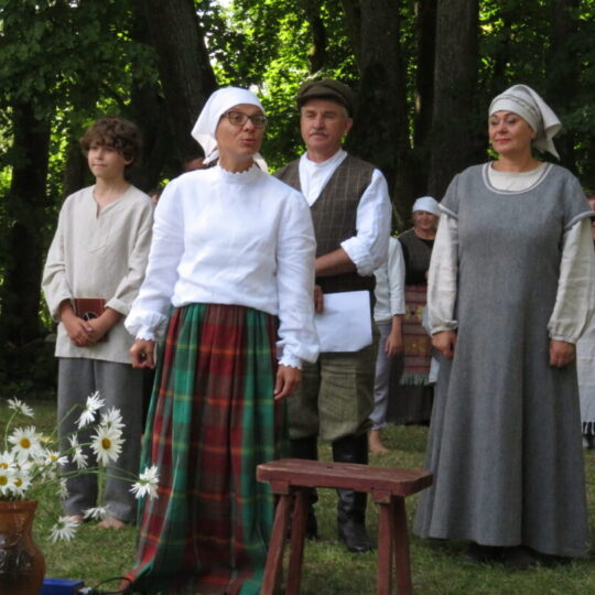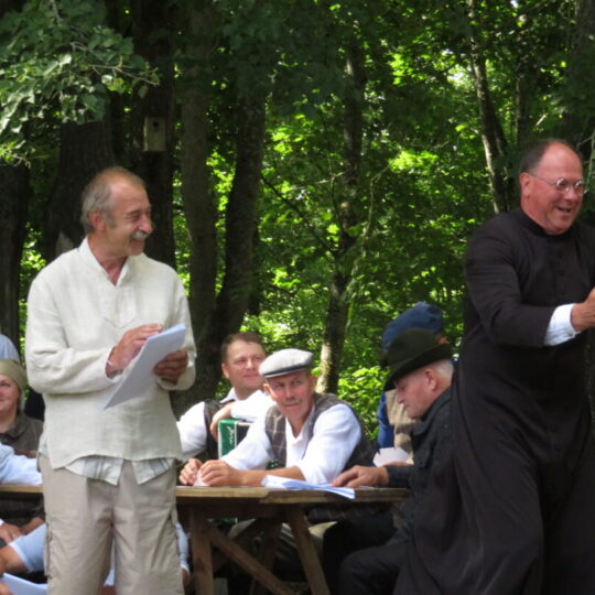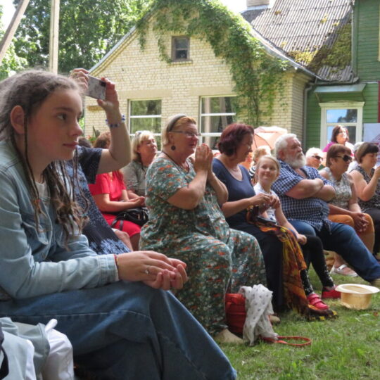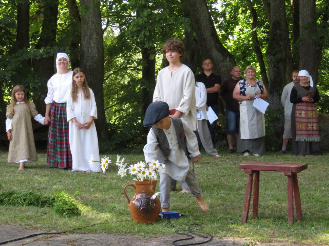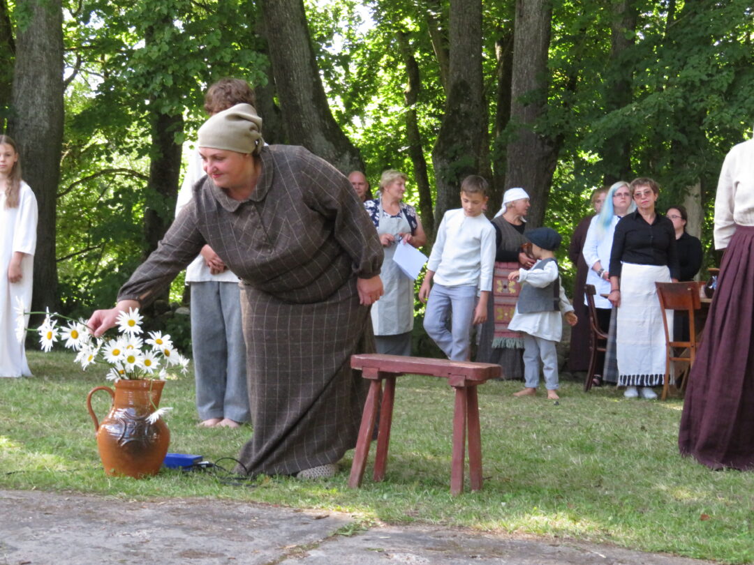 Atsitiktinis praeivis, šeštadienį užsukęs prie Panemunėlio miestelio bažnyčios, būtų sutrikęs – kokie nematyti du kunigai lūkuriuoja tarp senų liepų? Tik akylesnis būtų įžvelgęs stulbinantį vieno sutaną vilkinčio žmogaus panašumą į gerai žinomą panemunėlietį muzikantą Giedrių Viduolį. Nieko nuostabaus, nes šeštadienį Panemunėlyje, prie senosios klebonijos, prasidėjo XVIII Rokiškio rajono kaimo mėgėjų teatrų festivalis „Seklyčia“, o teatralizuotoje kompozicijoje „Lietuviško teatro lopšys“ G. Viduoliui teko vaidinti kunigą, rašytoją J. Tumą-Vaižgantą, kuris Panemunėlyje kažkada iš tikrųjų vedė vieną teatro repeticiją. Buvo daug improvizacijos ir skanaus juoko, kadangi G. Viduolis kai kuriuos aktorius pasirinko iš žiūrovų.