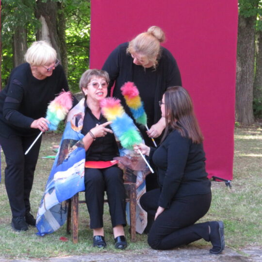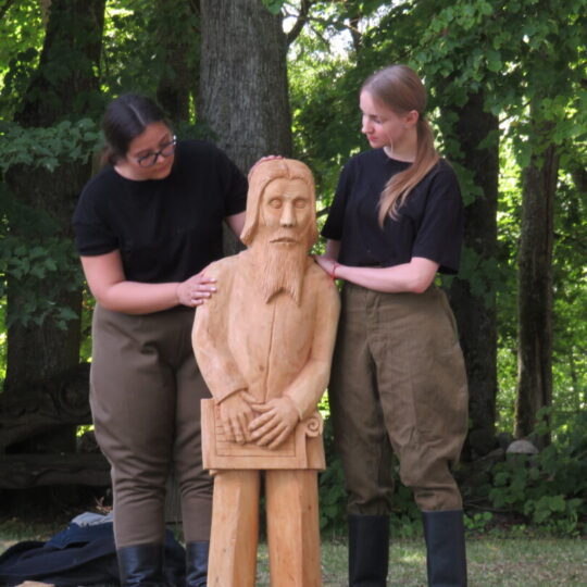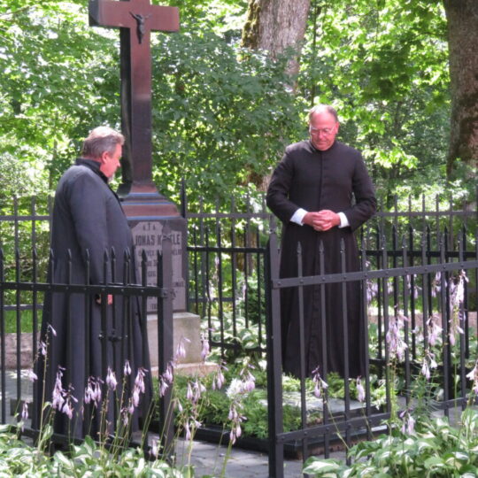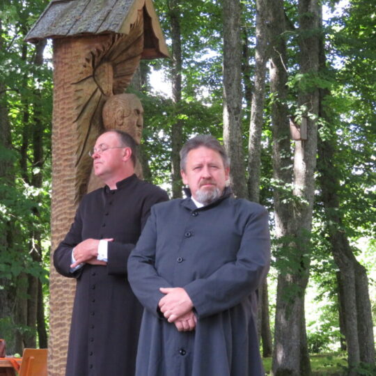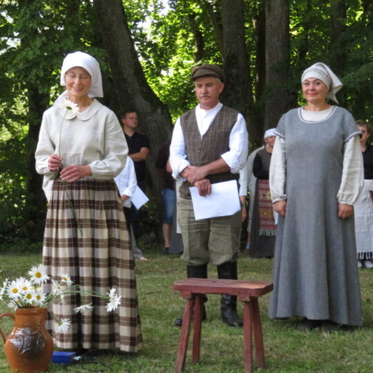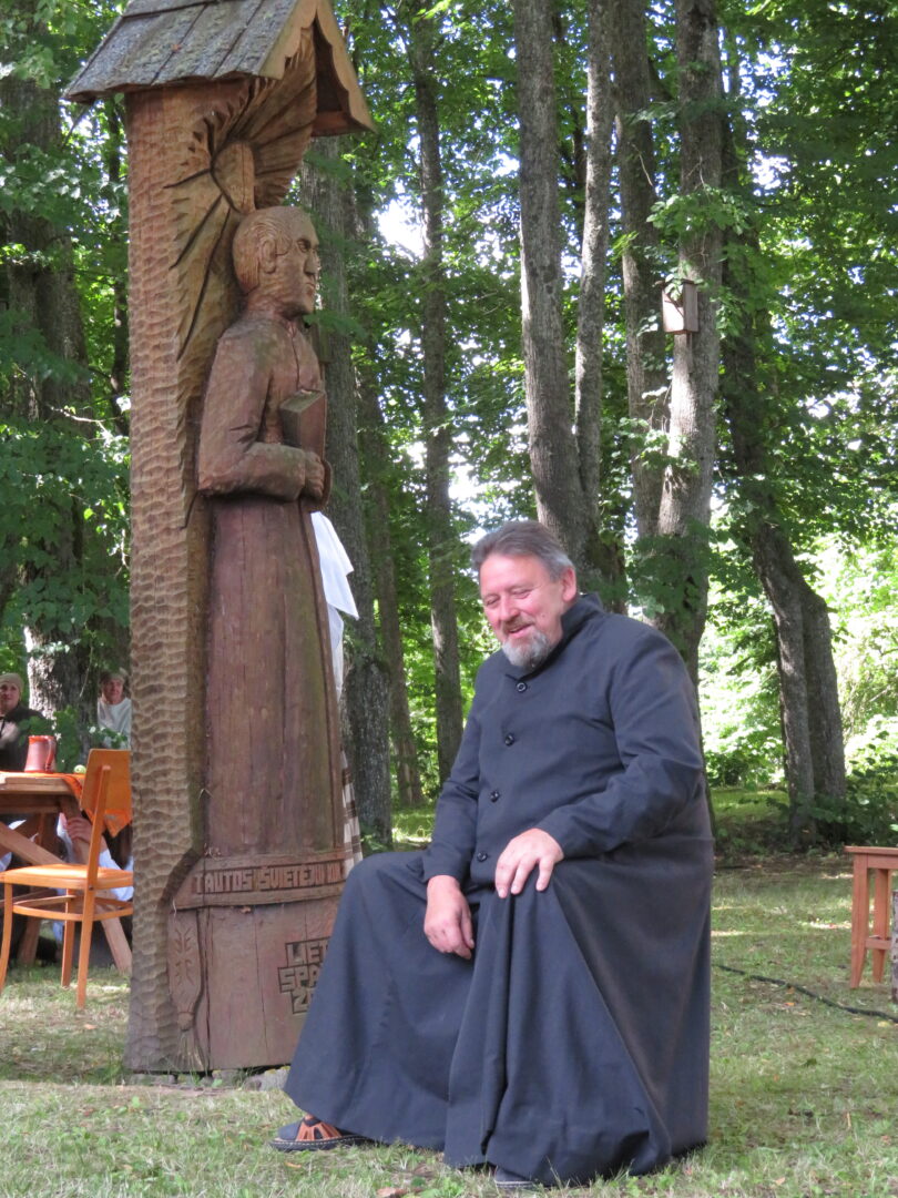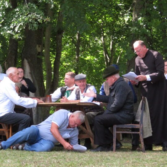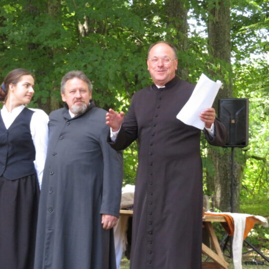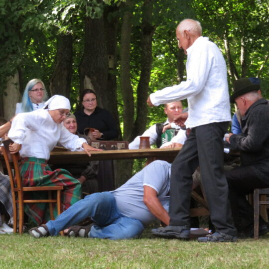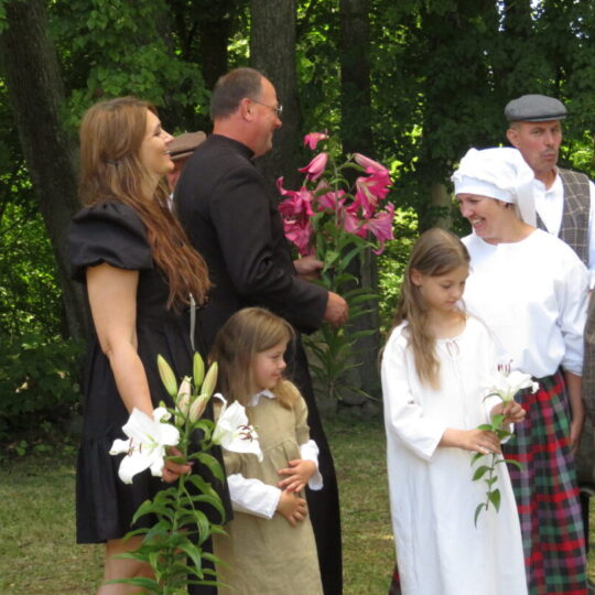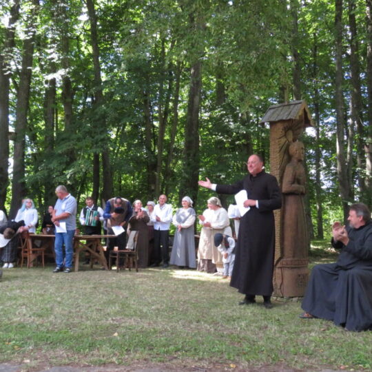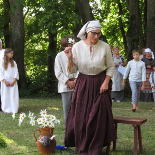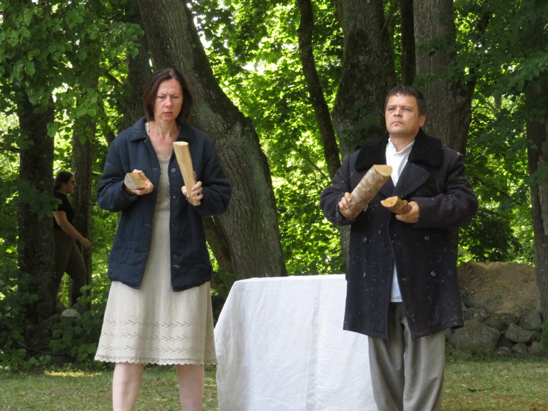 Atsitiktinis praeivis, šeštadienį užsukęs prie Panemunėlio miestelio bažnyčios, būtų sutrikęs – kokie nematyti du kunigai lūkuriuoja tarp senų liepų? Tik akylesnis būtų įžvelgęs stulbinantį vieno sutaną vilkinčio žmogaus panašumą į gerai žinomą panemunėlietį muzikantą Giedrių Viduolį. Nieko nuostabaus, nes šeštadienį Panemunėlyje, prie senosios klebonijos, prasidėjo XVIII Rokiškio rajono kaimo mėgėjų teatrų festivalis „Seklyčia“, o teatralizuotoje kompozicijoje „Lietuviško teatro lopšys“ G. Viduoliui teko vaidinti kunigą, rašytoją J. Tumą-Vaižgantą, kuris Panemunėlyje kažkada iš tikrųjų vedė vieną teatro repeticiją. Buvo daug improvizacijos ir skanaus juoko, kadangi G. Viduolis kai kuriuos aktorius pasirinko iš žiūrovų.