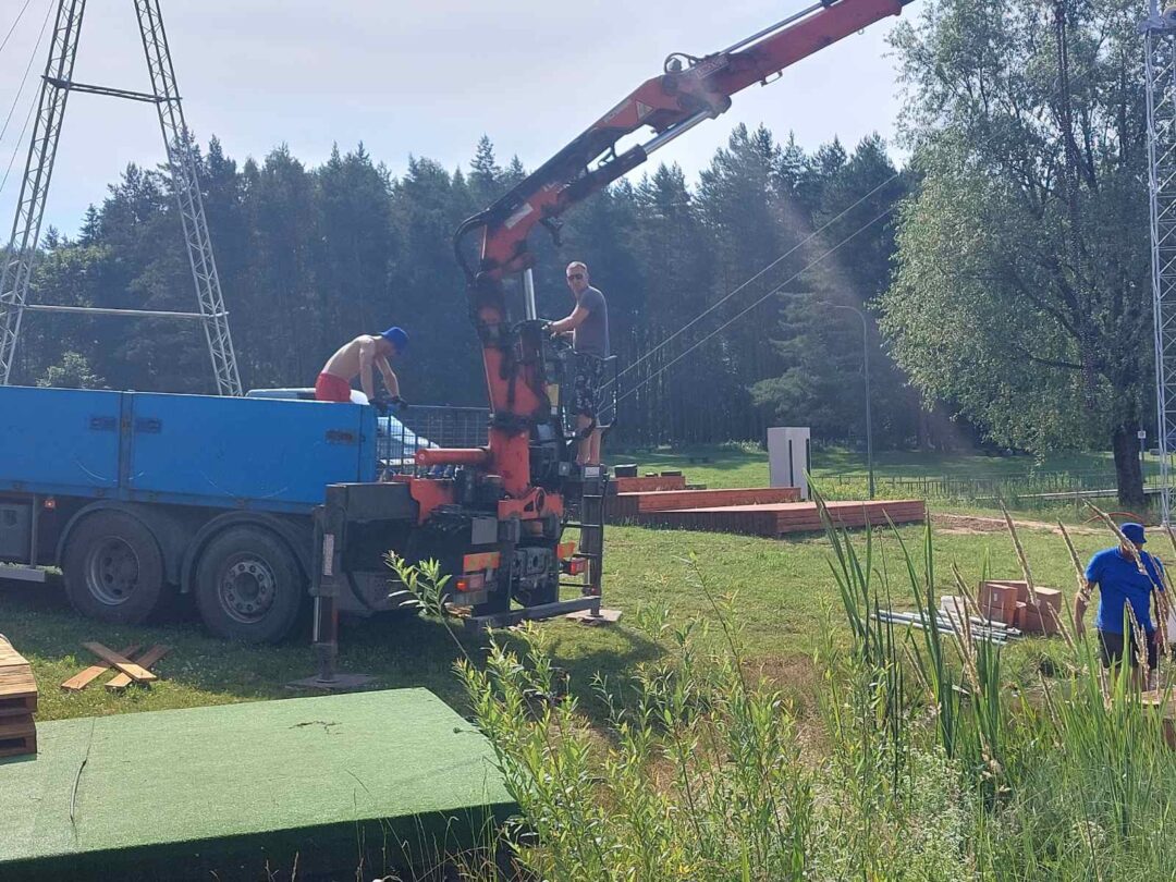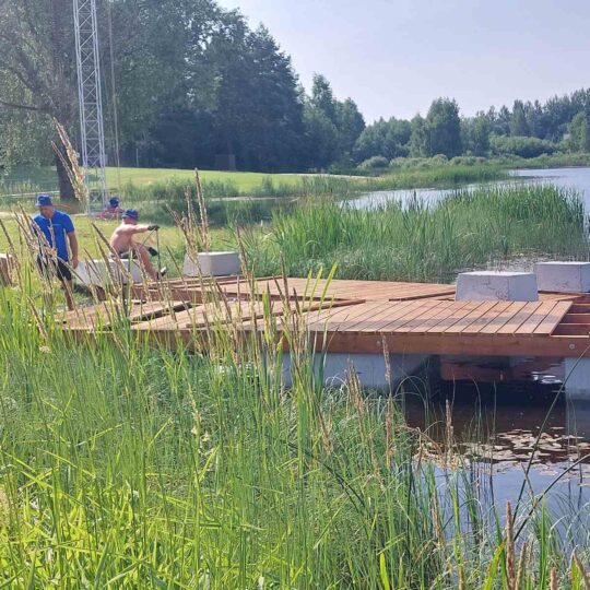 Šiandien prie Rokiškio ežero „išdygo“ dar vienas T formos tiltas, tik kur kas mažesnis. Tiltas skirtas vandenlenčių sporto mėgėjams, kurie galės startuoti nuo jo. Pasak Rokiškio baseino direktoriaus Vitalijaus Jocio, jau nuo šiandien pradeda veikti ir ilgesnė vandenlenčių trasa. „Šiandien leisime išbandyti ir ilgesnę, sunkesnę trasą. Visi norintys pasimokyti galės ja pračiuožti, tiesa, kol kas ši trasa bus be figūrų. Kitą savaitę planuojame į ją perkelti trumpesnėje trasoje stovinčias figūras“, – sako V. Jocys.
