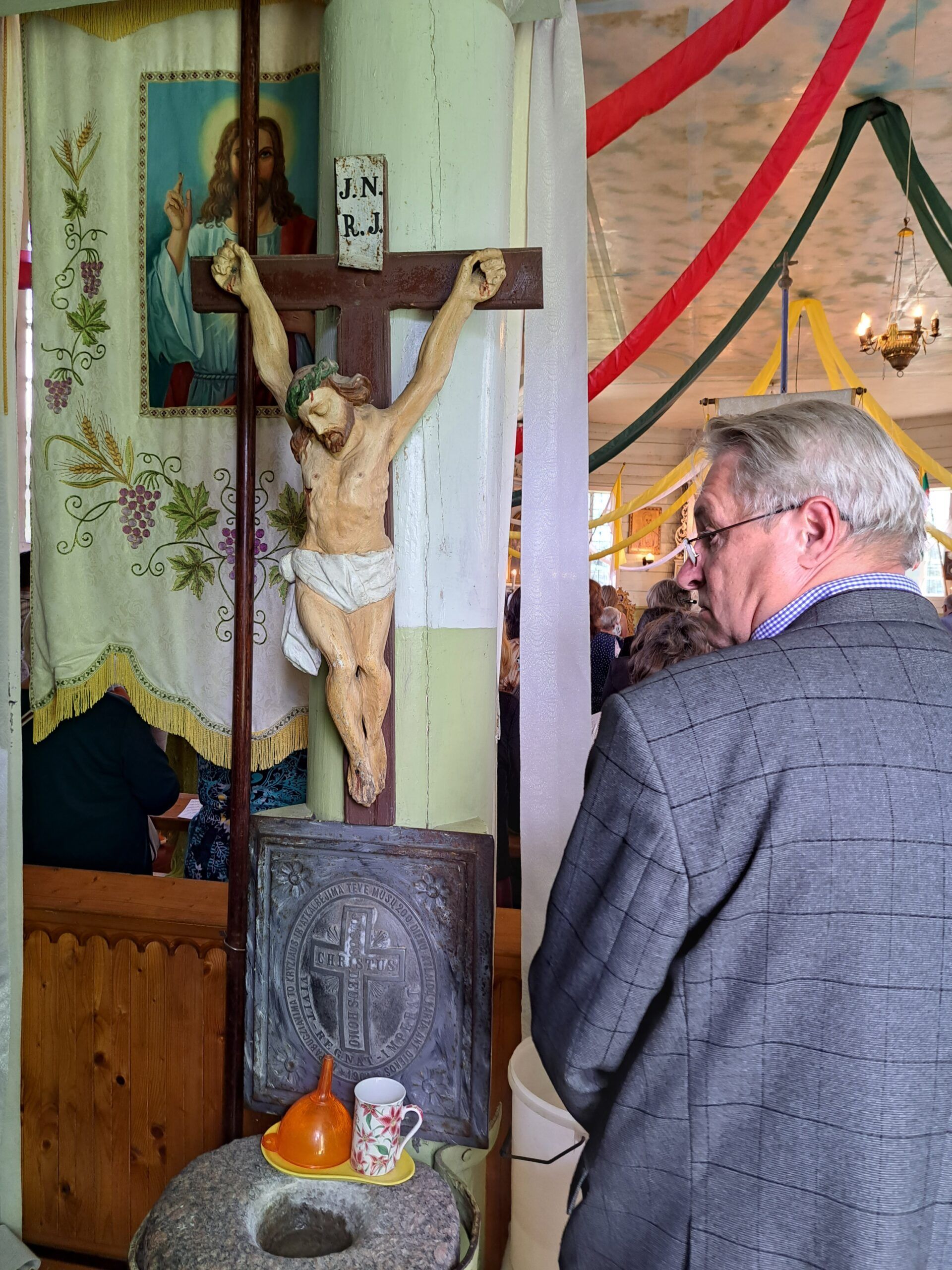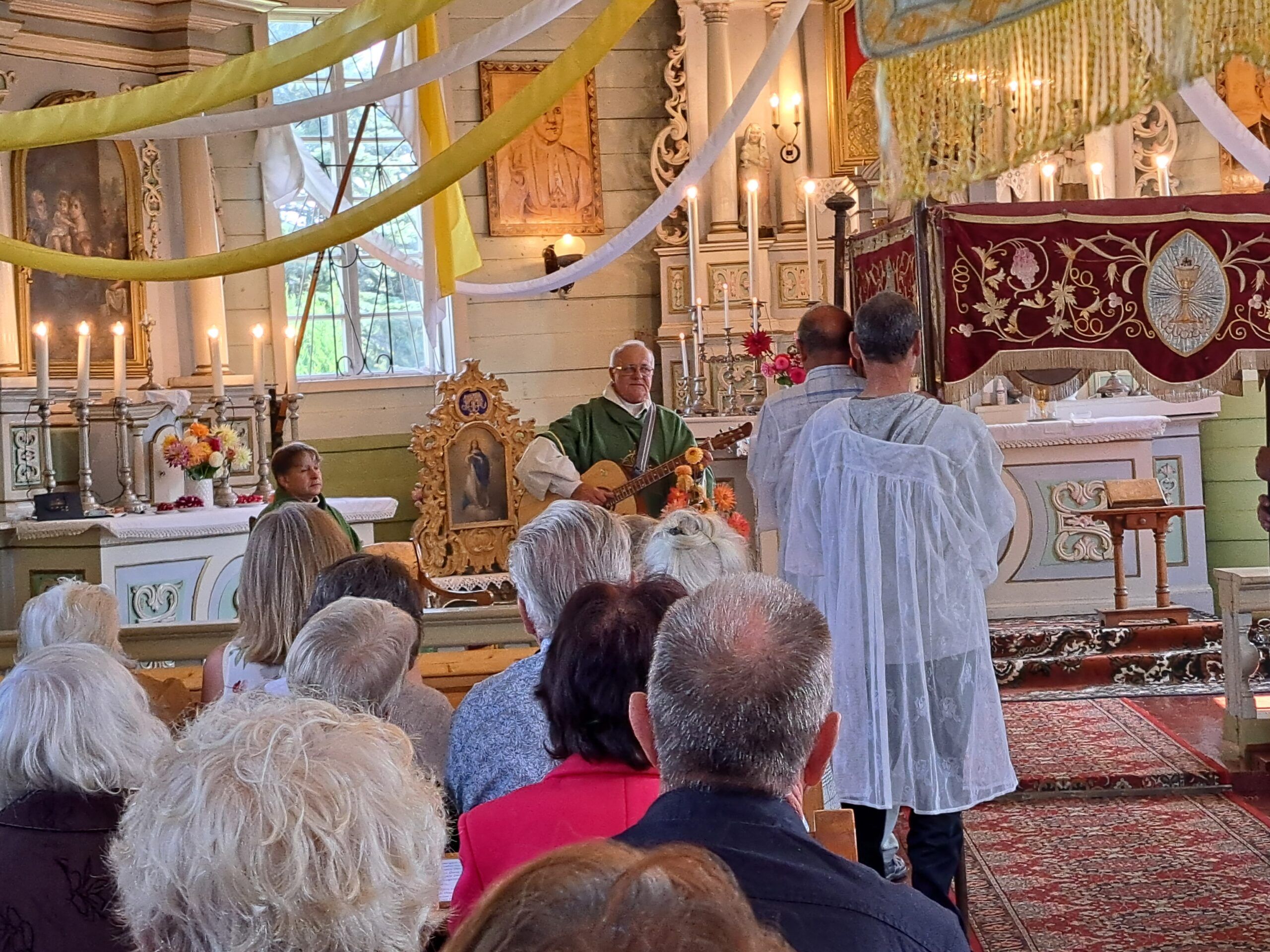 Svečiui kunigui talkino Ragelių parapiją aptarnaujantis kun. Egidijus Vijeikis. Šv. Mišiose giedojo Rokiškio kultūros centro Jūžintų choras „Aleliuja“ (vadovė Vilma Likienė). Baigiantis pamaldoms, visi jungėsi į iškilmingą procesiją.