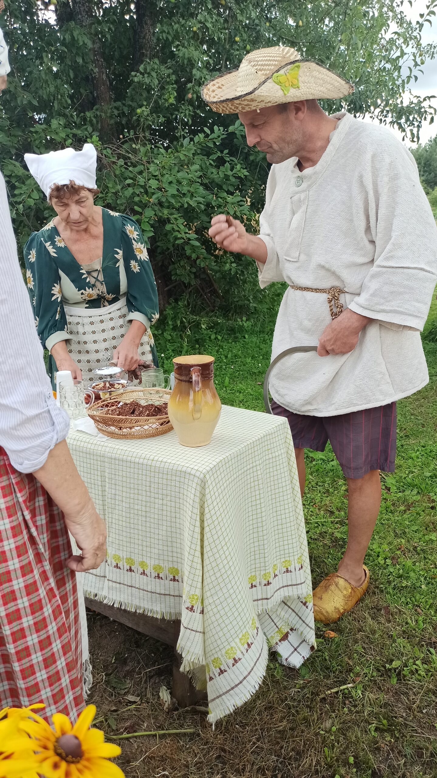 Liepos 19 dieną į Ragelius sugužėjo svečiai, „apsirėdę“ šienpjovių drabužiais, nešini kas dalgiais, kas pjautuvais, o kas su pintinėmis, pilnomis „gastinčiaus“ šventės užbaigtuvėms. Renginys vyko pagal visas lietuviškas tradicijas. Visi dalyviai buvo sutikti ir pavaišinti duona, kepta iš praėjusių metų derliaus, o kelionės dulkes galėjome nuplauti šeimininko pagaminta namine gira. Edukatorė Gražina trumpai supažindino su senovinės rugiapjūtės tradicijomis, jos svarba mūsų kultūroje ir gyvenime. Rugiapjūtės laikotarpis simbolizuoja gamtos ciklo užbaigimą ir naujo derliaus pradžią, todėl šis laikas yra apgaubtas įvairiais papročiais, tradicijomis, ritualais.