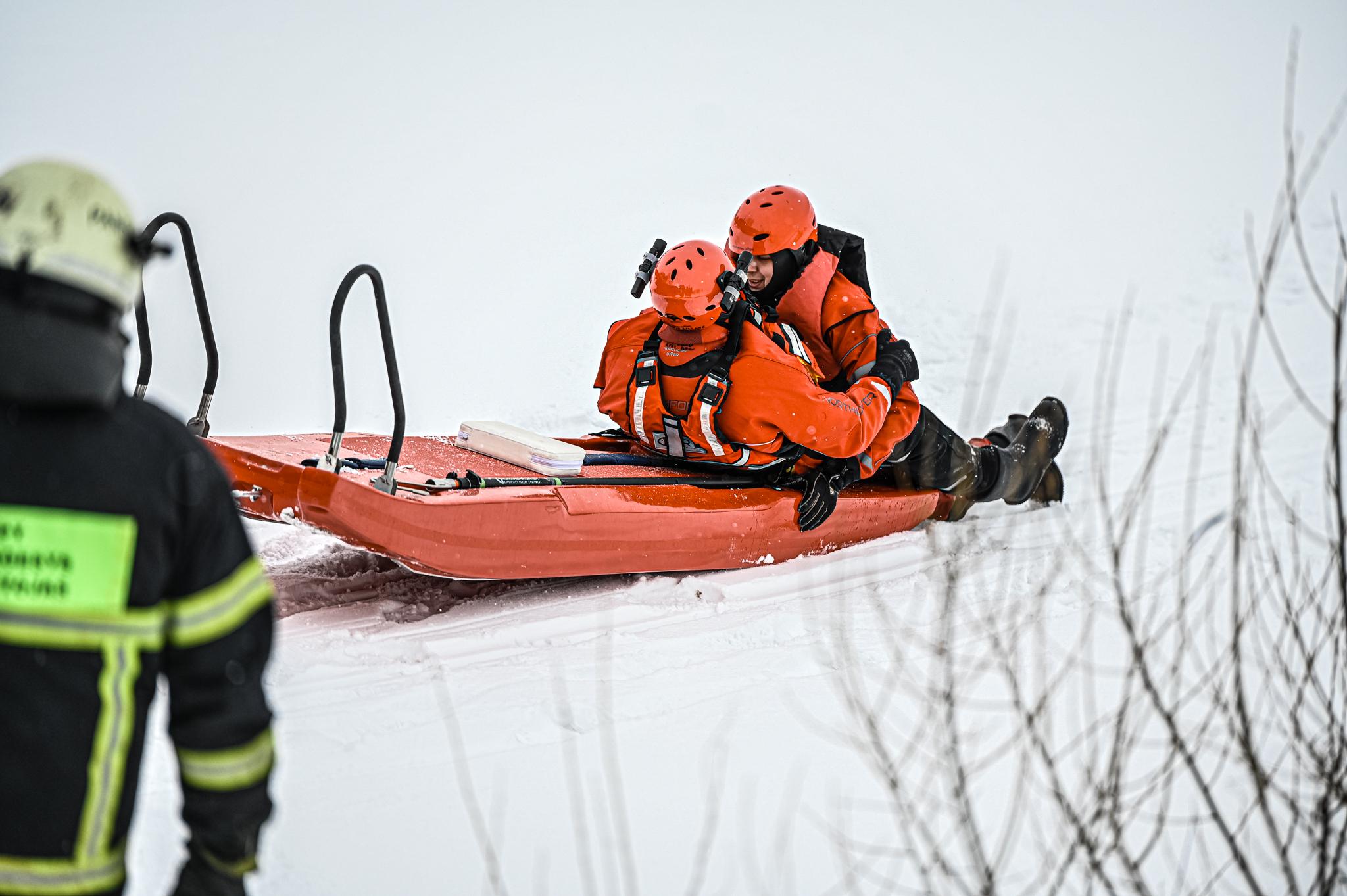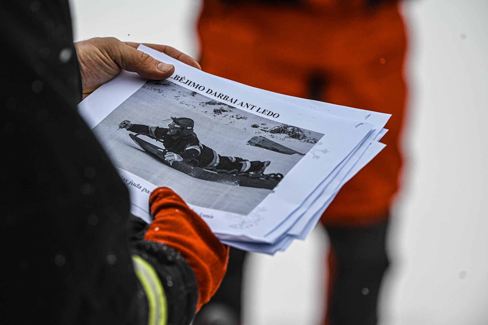 „Šiuo metu ledo storis vietomis siekia 5 cm ir daugiau, tad dauguma žvejų pradeda poledinę žūklę, o mums prasideda gelbėjimo sezonas. Kai tik turime sąlygas ir galimybę lipti ant ledo, stengiamės atnaujinti profesines žinias. Visos devynios rajono ugniagesių komandos turi specialias roges, skirtas gelbėjimo darbams, yra aprūpintos gelbėjimo ratais ir liemenėmis. Taigi prireikus galime imtis gelbėjimo darbų“, – sako R. Sunklodas. Jo teigimu, šiandien gelbėtojams nebent stinga tik specialių plaukimo drabužių. Jie kainuoja daugiau nei 3000 eurų, tokius turi tik Valstybinės priešgaisrinės gelbėjimo tarnybos gelbėtojai, kurie ir padėjo pratybų metu.