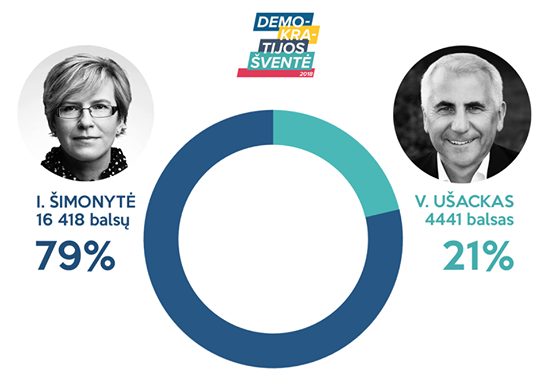 Tėvynės sąjungos–Lietuvos krikščionių demokratų (TS–LKD) sekretoriato duomenimis, už I. Šimonytę balsavo 79 proc. (16 tūkst. 418) konservatorių ir besiregistravusių nepartinių rėmėjų, už buvusį diplomatą V. Ušacką – 21 proc. (4441). Partijos tarybos posėdį, kuriame bus tvirtinami rinkimų rezultatai, ketinama rengti artimiausiu metu lapkritį.