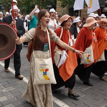 Rokiškėnų delegacijai vadovauja rajono savivaldybės Kultūros, turizmo ir ryšių su užsienio šalimis skyriaus specialistė Janina Komkienė. Šventės dalyviais rūpinasi ir Choreografijos mokyklos direktorius Arūnas Skardžius bei savivaldybės Švietimo skyriaus vyriausioji specialistė Jolita Geidanienė. J. Komkienė sakė, jog viskas vyksta tvarkingai, išskyrus tai, kad „stringama dėl maitinimo“. Tai ji diplomatiškai įvardijo „naujovišku šventės organizavimu“. Mat maitinama repeticijų vietose, tenka ilgai laukti.