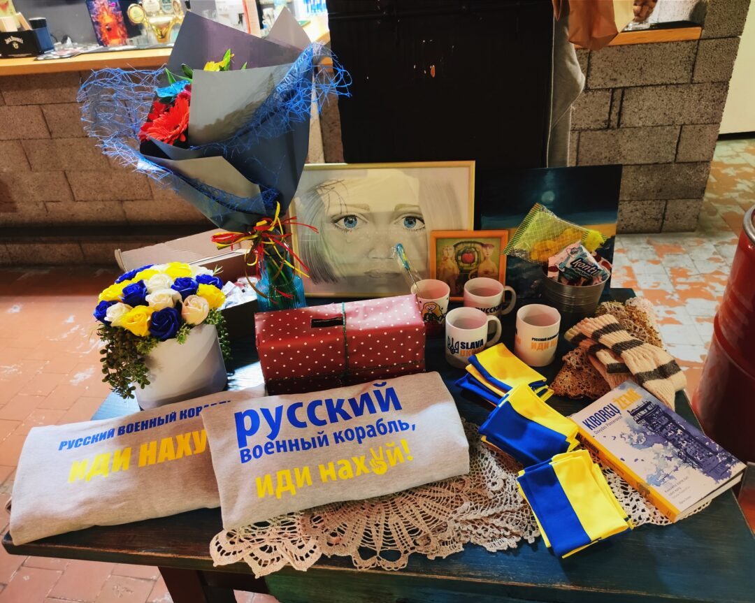 Bene didžiausią ažiotažą sukėlė džemperiai su „sparnuota“ fraze, ištarta Ukrainos gynėjų. Trys džemperiai parduoti net už 160 eurų. Susirinkusieji mielai aukojo pinigus ir į aukų dėžutę.