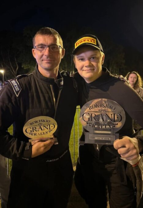 Geriau sekėsi gerokai jaunesniems – Saimono Daudžvardžio ir Justino Vainiūno duetui. Dar prieš ralio sezoną „Gimtasis…“ rašė, kad Saimonas persėdo į naują „Ford Fiesta R2T“ automobilį, pasirinko naują šturmaną ir šiame sezone turėjo nemažai vilčių pasirodyti labai sėkmingai. Deja, pirmuosiuose Lietuvos ralio čempionato etapuose šiam ekipažui sekėsi prastokai – dėl techninių problemų trasos jie vis nebaigdavo. Be problemų neapsiėjo ir „Rokiškio Grand Rally“, bet distanciją baigti pavyko. Ir ne tik baigti. Nors bendrojoje įskaitoje jaunieji ralio meistrai liko toli nuo nugalėtojų pakylos, savo klasėje užėmė trečiąją vietą, o po pirmosios ralio dienos buvo netgi pirmi. Plačiau apie Rokiškio ralį ir visą sezoną šnektelėjome su pačiu Saimonu.