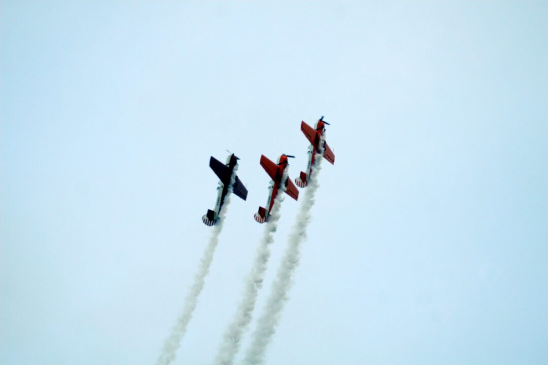 ANBO programoje – sinchroniški skrydžiai, danguje raižomos kilpos ir nusidriekusios dūmų uodegos, o ant žemės nugriaudėjo fejerverkų siena.