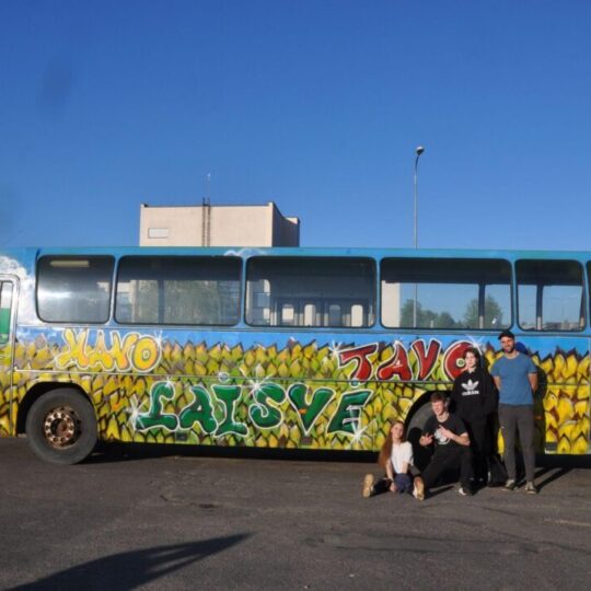 Subūrėme kompetentingą komisiją, kuri supranta gatvės meną, surengėme konkursą su ir atrinkome darbą. Autobuso apipavidalinimu pasirūpino mūsų jaunimas. Deja, vos tik pradėjome puošti autobusą, mus iškart pagavo lietus. Kurį laiką jis trukdė tęsti darbus, tad buvo nuspręsta autobusą nuvaryti į angarą ir kurti po stogu“, – pasakoja G. Kriovė.