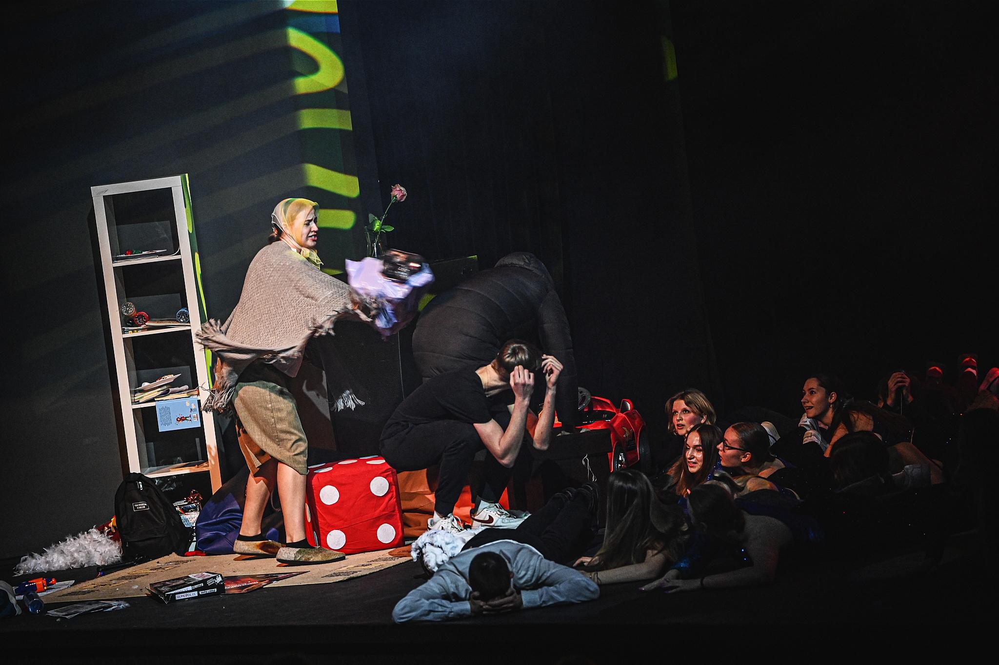Mokyklos vienuoliktokų ruoštas pasirodymas dvyliktokus ir visus svečius nukėlė į stalo žaidimo lentą, kurioje veikėjai pirko įvairias mokytojų gatves, skersgatvius, įkūnijo mokytojus bei mokyklą baigiančius dvyliktokus ir surengė net kelis šokių pasirodymus. Maža to, šimtadienio vaidinimo pabaigoje pasirodė ir socialinių tinklų žvaigždė Laurynas Maybach.