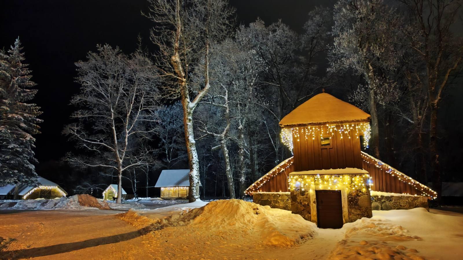Svečius muziejus pasitinka lyg pasakoje: tūkstančiais lempučių papuošti vartai ir Kalėdų pašto namelis šalia. Žavi lemputėmis suspindę medžiai, vedantys spalvotų sūpuoklių link, ir lauko apšvietimas. Šalia esančiame klojime galima pamatyti nuolatinę dvaro prakartėlių kolekciją, o naujausias, dalyvaujančias konkursinėje parodoje, išvysite dvaro rūmuose. Žinoma, reikėtų nepamiršti aplankyti ir nuolatinių dvaro gyventojų – danielių.