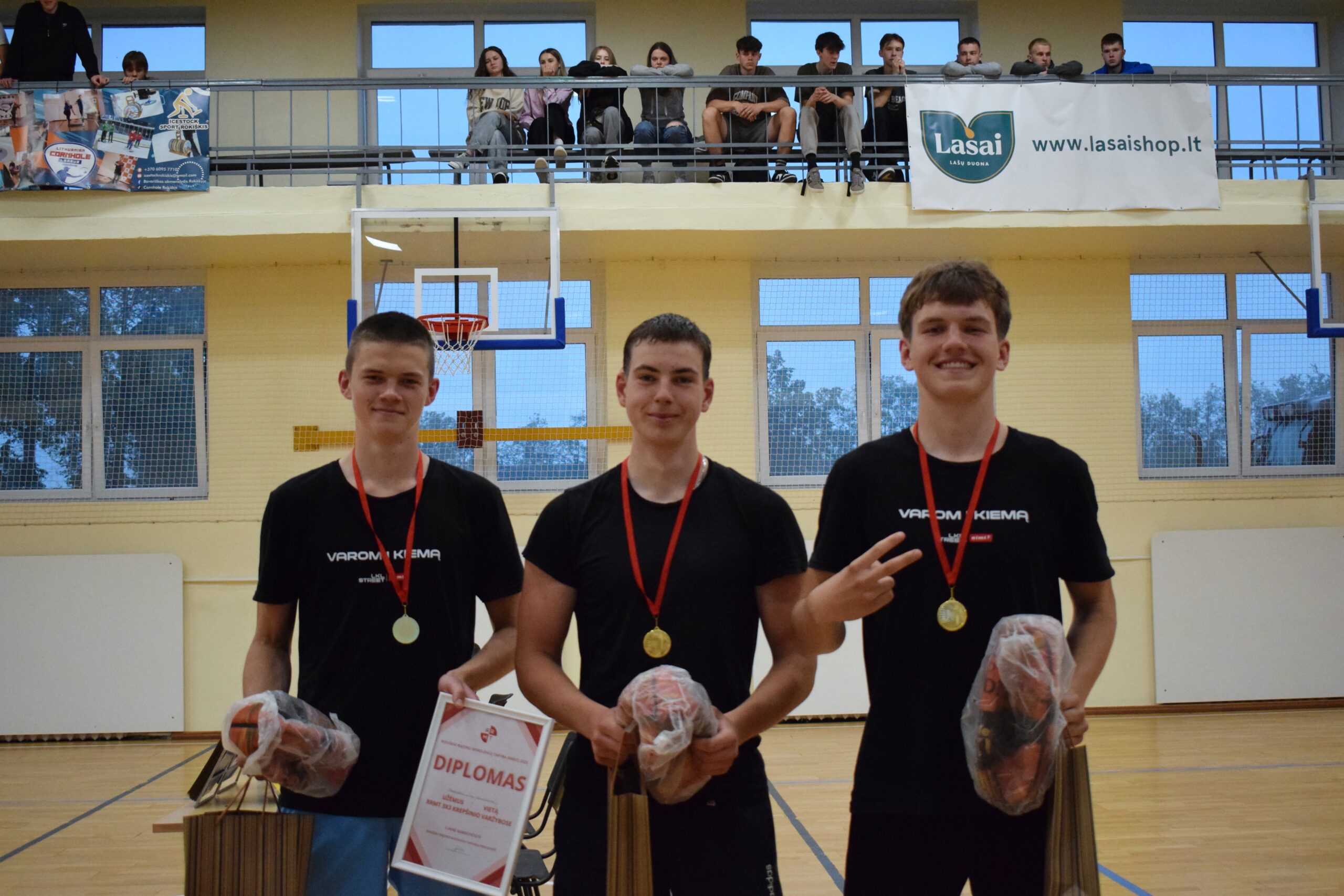 Taip pat dėkojame Rokiškio rajono kūno kultūros ir sporto centrui bei jo direktoriui Tadui Stakėnui už suteiktą sporto salę, be kurios varžybos būtų vykusios lietuje.