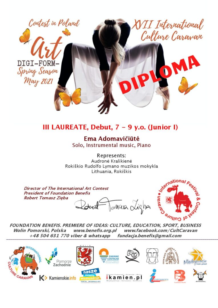 Gegužės 25 d. puikios naujienos pasiekė iš Lenkijoje vykusio XVII tarptautinio vaikų ir jaunimo įvairių žanrų   Art Digi – Form “Spring Season” virtualaus konkurso, kurį rengė organizacija  Culture Caravan. Jame dalyvavo Rokiškio Rudolfo Lymano muzikos mokyklos ankstyvojo muzikinio ugdymo mokinukė Milita Jasiūnaitė, kuri vaikų iki 6 metų kategorijoje tapo II vietos laureate (klasikinio dainavimo žanras). I klasės mokinė Bronzinio balso nominacijoje Augustė Zizaitė  pelnė I vietos laureatės diplomą (liaudies dainos atlikimo žanras). Mergaites konkursui parengė mokytoja Rasa Pletaitė-Junokienė. Instrumentinės muzikos žanre debiutavo mokytojos Audronės Kralikienės I klasės mokinė pianistė Ema Adomavičiūtė, kuri Debiuto nominacijoje tapo III vietos laureate.