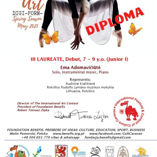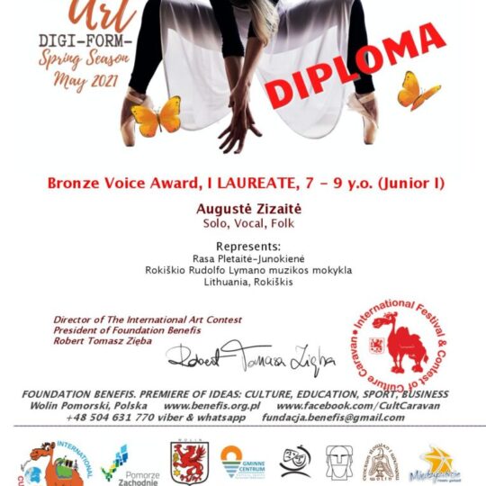 Gegužės 25 d. puikios naujienos pasiekė iš Lenkijoje vykusio XVII tarptautinio vaikų ir jaunimo įvairių žanrų Art Digi – Form “Spring Season” virtualaus konkurso, kurį rengė organizacija Culture Caravan. Jame dalyvavo Rokiškio Rudolfo Lymano muzikos mokyklos ankstyvojo muzikinio ugdymo mokinukė Milita Jasiūnaitė, kuri vaikų iki 6 metų kategorijoje tapo II vietos laureate (klasikinio dainavimo žanras). I klasės mokinė Bronzinio balso nominacijoje Augustė Zizaitė pelnė I vietos laureatės diplomą (liaudies dainos atlikimo žanras). Mergaites konkursui parengė mokytoja Rasa Pletaitė-Junokienė. Instrumentinės muzikos žanre debiutavo mokytojos Audronės Kralikienės I klasės mokinė pianistė Ema Adomavičiūtė, kuri Debiuto nominacijoje tapo III vietos laureate.