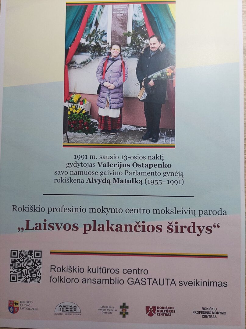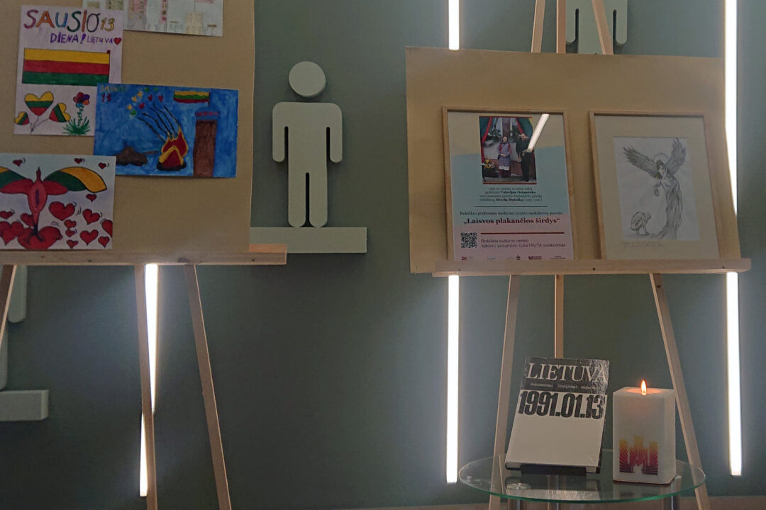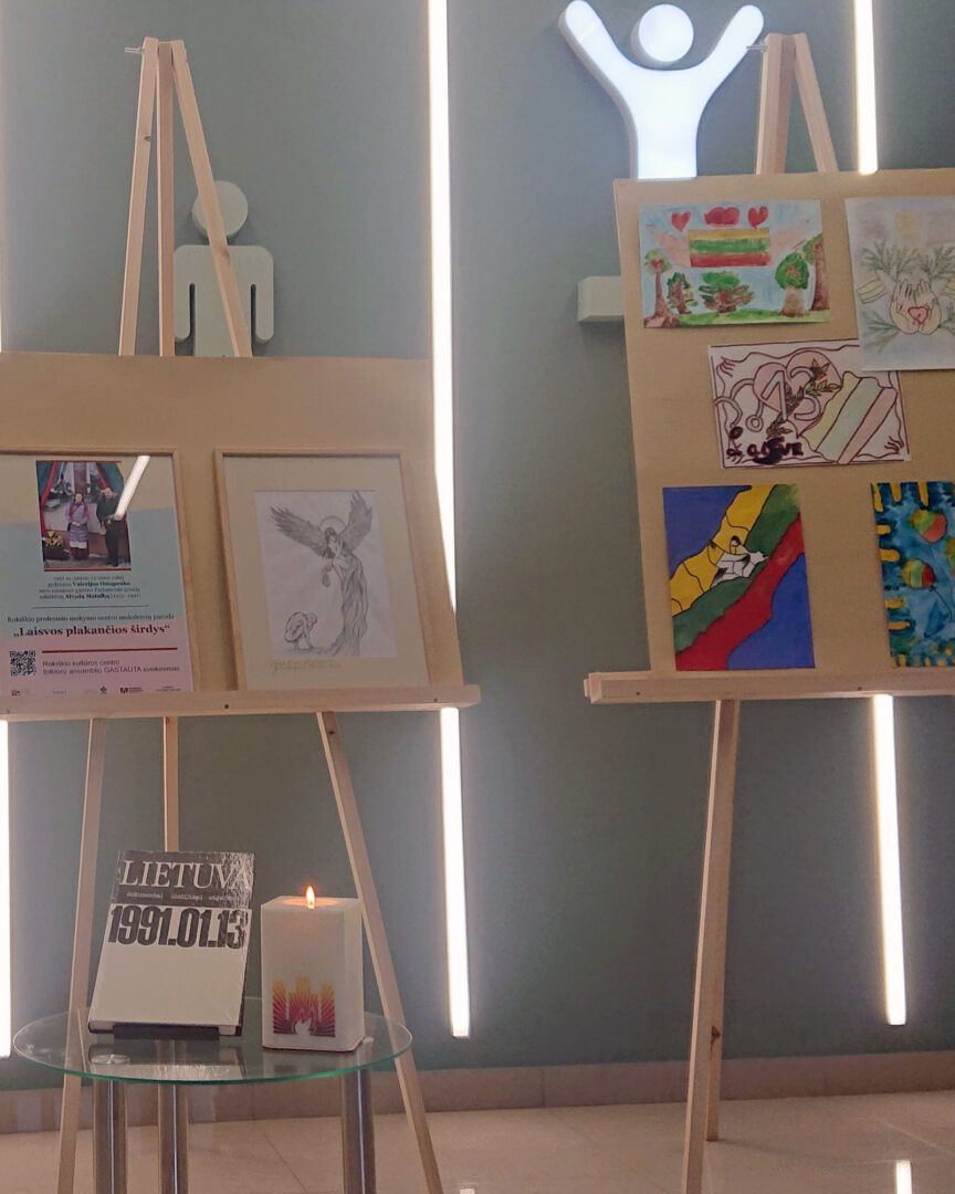 Laisvės gynėjų dienos išvakarėse kūrybiški Rokiškio profesinio mokymo centro mokiniai kartu su pedagogais parengė piešinių parodą „Laisvos plakančios širdys“.
