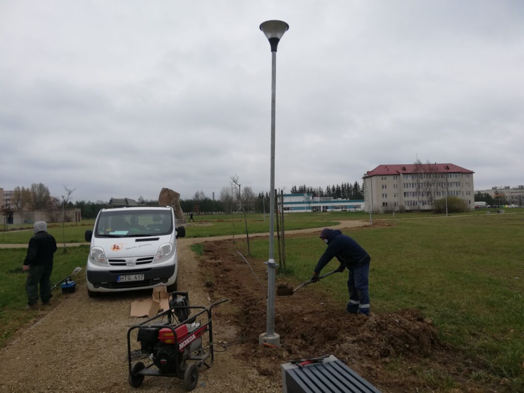 Nauju apšvietimu jau džiaugiasi „Velykalnio“ bendruomenė, o štai naujai kuriamame „Rotary“ parke taip pat kyla nauji apšvietimo stulpai. Darbus parke planuojama pabaigti jau kitą savaitę, iš viso bus pastatyta dešimt apšvietimo stulpų.