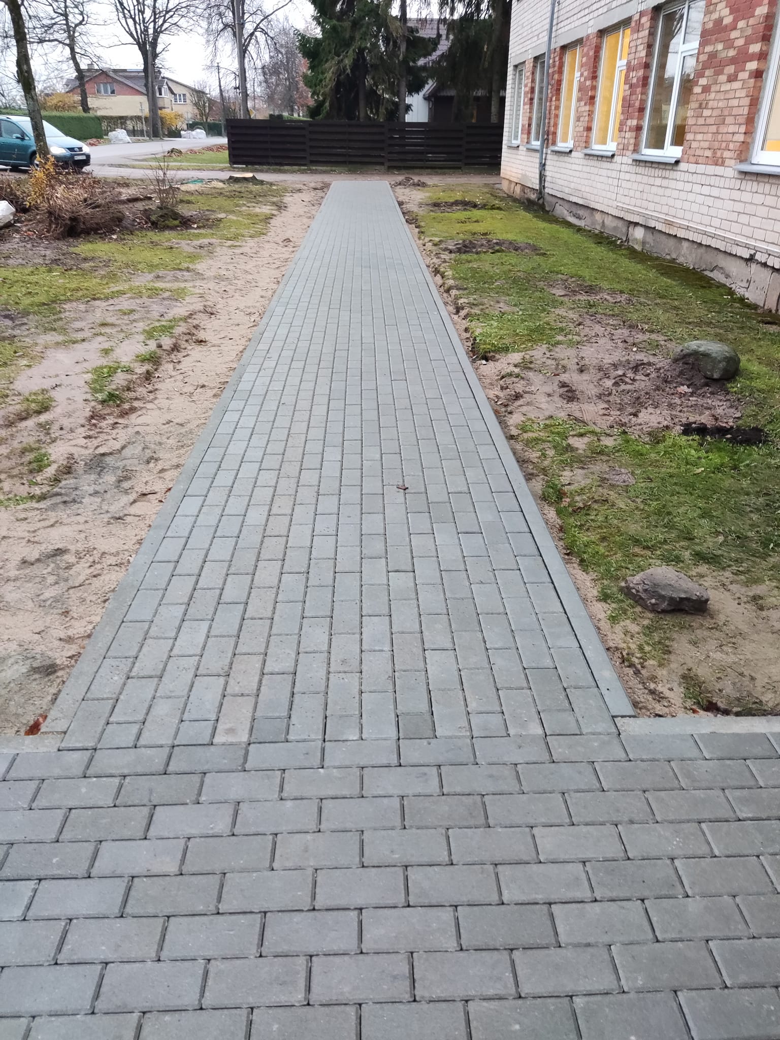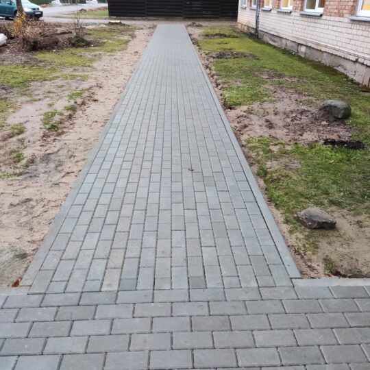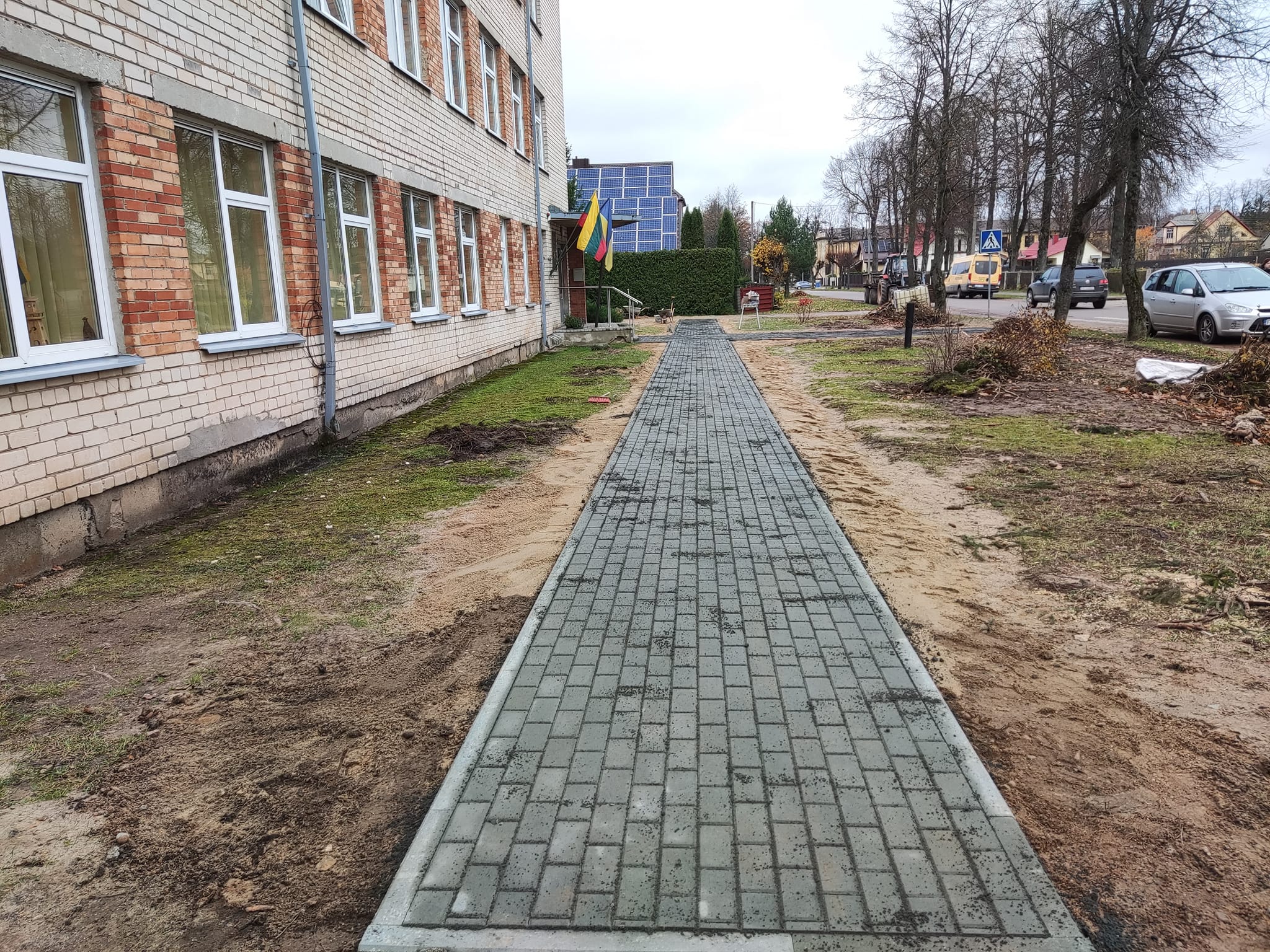 Prie Rokiškio socialinės paramos centro J. Basanavičiaus g. 8 baigti pėsčiųjų takelio įrengimo darbai. Pagrindinis įėjimas į centro patalpas rudenį ir pavasarį dažnai skendėjo balose. Problema išspręsta įrengus naują takelio grindinį. Darbus finansavo rajono savivaldybė.
