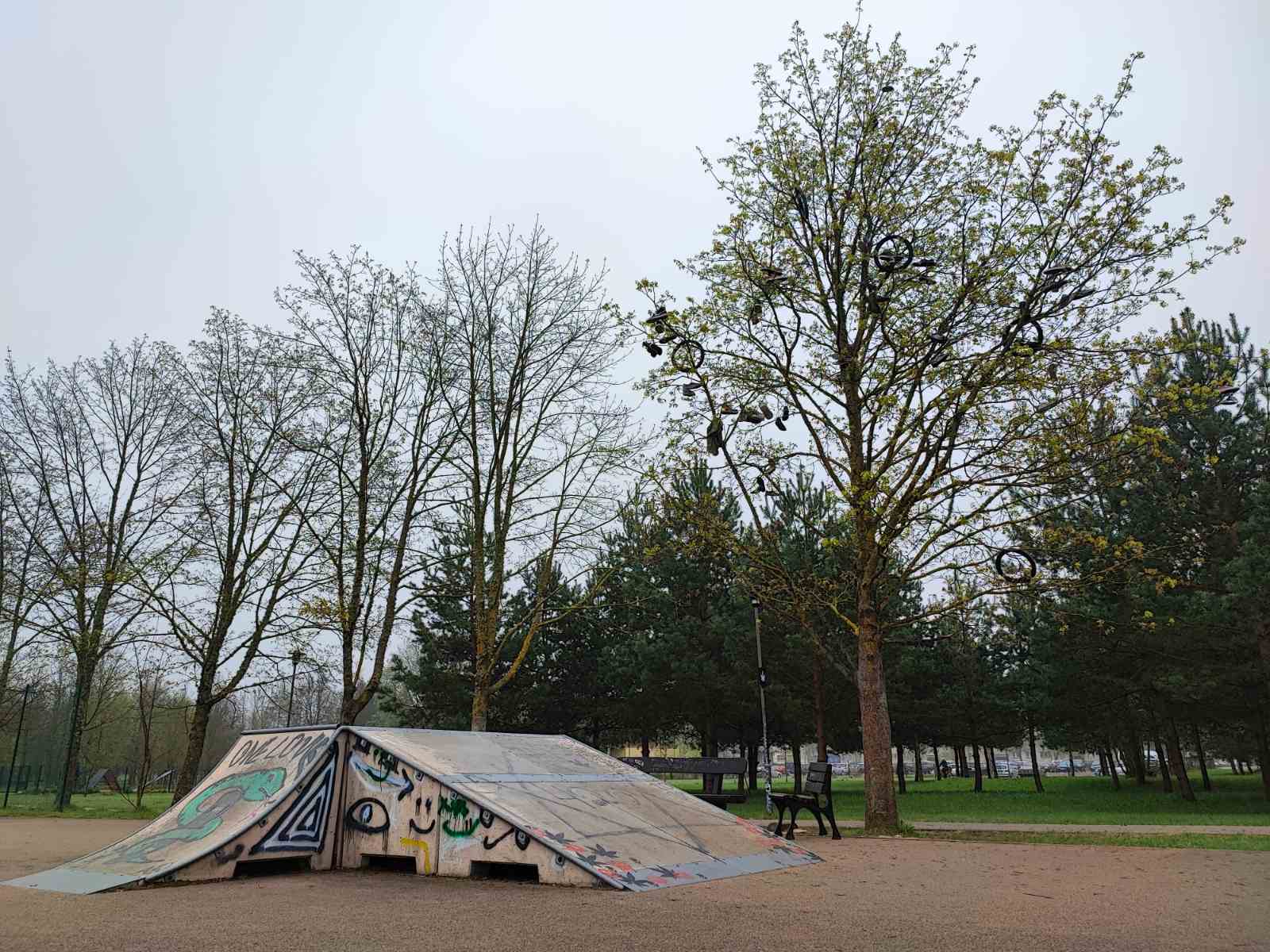 Turbūt mažai rokiškėnų yra pastebėję medį šalia riedlenčių parko. Jis išties apkabinėtas batais ir dviračio padangomis, lyg būtų kokia meninė išraiška. Beje, panašus „batų medis“ yra vienoje iš valstijų JAV, Nevadoje, ir yra tapęs traukos objektu vienišiausiame 50-ajame greitkelyje.