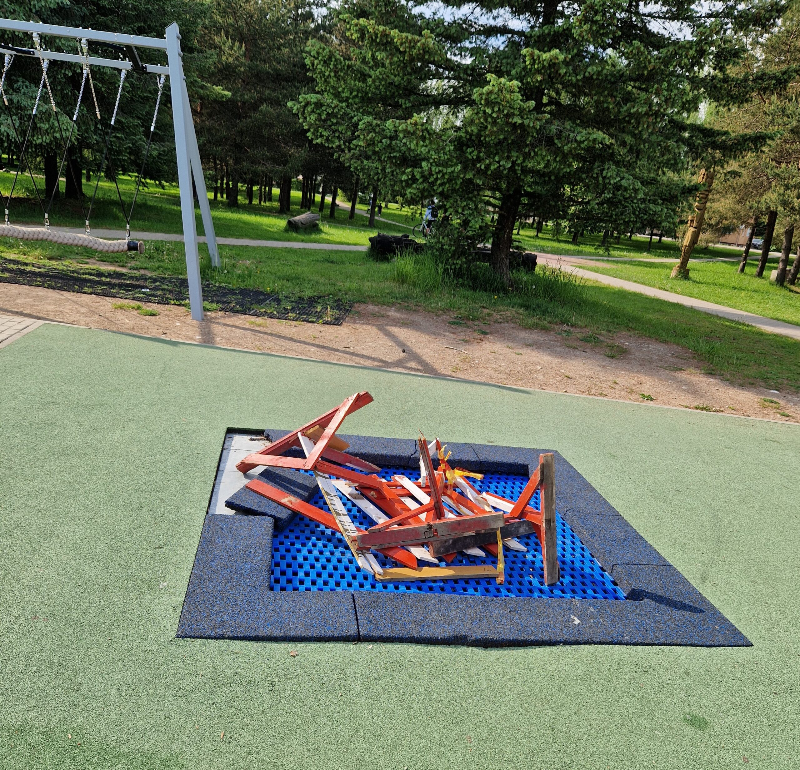 „Orams atšilus, artėjant vasarai vis dažniau su vaikais norisi apsilankyti vaikų žaidimų aikštelėse. Viena mylimiausių, esanti Liongino Šepkos parke. Pastebėjome, kad maždaug nuo kovo mėnesio vidurio yra aptvertas vienas iš „batutų“. Šiuo metu užtvaras yra sulaužytas ir sumestas į krūvą. Vaikams knieti užlipti, paliesti, nors tai tikrai nėra saugu. Šalia esantis kitas „batutas“ taip pat „ant ribos“, šokinėjant dvimečiui skyla jo pagrindas. Ar planuojama juos tvarkyti? Ir kaip greitai?“ – klausia „Gimtojo…“ skaitytojas.