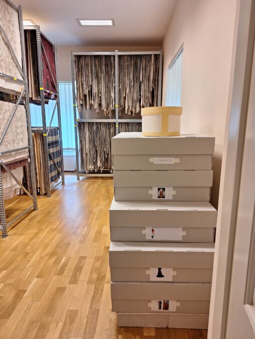 Iki 2025 metų Rokiškio grafų drabužių kolekcija buvo eksponuojama dvaro rūmų ekspozicijoje. “Pernai įvertinti Rokiškio grafų drabužių kolekcijos būklę buvo pakvieti Lietuvos nacionalinio dailės muziejaus P. Gudyno restauravimo centro ekspertai-tekstilės restauratoriai. Nustatyta, jog dabartinė drabužių būklė yra avarinė: eksponatai apdulkėję; nuo ilgamečio kabėjimo kai kuriuose drabužiuose susimetė neišlyginamos raukšlės; sunkesnės, stikliniais karoliukais puoštos suknelės pradėjo plyšti, tapo skylėtos, dekoras ėmė byrėti; plono šilko audiniai suskilinėjo, batisto detalės deformavosi, šviesios medžiagos pakeitė spalvą, papilkėjo, pagelto net parudavo; deformavosi manekenai, pakeitė spalvą jų movos. Jautrius tekstilės eksponatus iš šilko ar plonos vilnos rekomenduojama rodyti neilgą laiką, pusmetį ar metus, tuomet nuimti nuo manekenų ir horizontaliai patiestus kelerius metus ilsinti saugyklose, specialiai tam pritaikytose uždarose spintose ar dėžėse. Rokiškio grafų kolekcija eksponuojama pavojingai per ilgai, rizikuojant negrįžtamai prarasti unikumus. Dalis grafų drabužių kolekcijos buvo iš ekspozicijos išimta ir sudėta į kokybiško kartono dėžes. Su restauratoriais sutartas drabužių konservavimo ir restauravimo darbų planas“, – sakė pašnekovė.