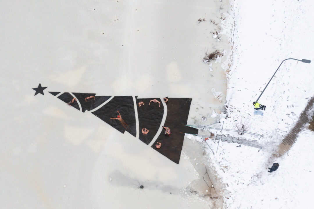 Į ją įšokę kone dešimt šalto vandens mėgėjų iš viršaus atrodė kaip eglės žaisliukai, o šį kadrą įamžinti pavyko fotografui Dariui Baltakiui.