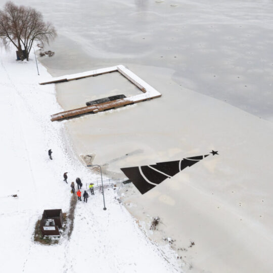 Kaip sakė vienas idėjos iniciatorių Mindaugas Nabagas, šie darbai truko apie dvi valandas, juos vainikavo kitokios maudynės eglės formos eketėje.