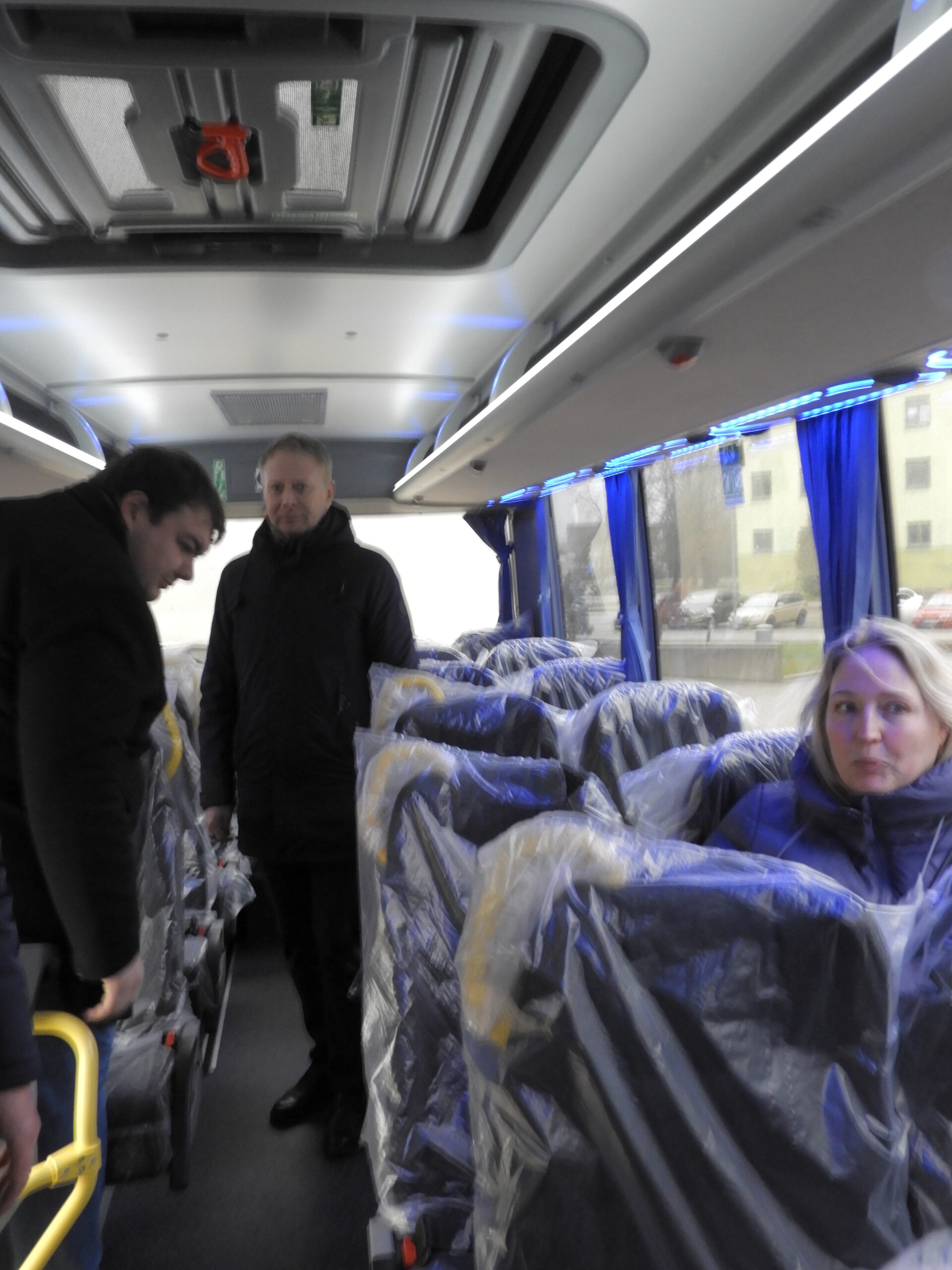 Yra autobusuose ir anksčiau nematytų naujovių. Pavyzdžiui, prie kiekvienos sėdynės yra USB jungtys, modernus neoninis apšvietimas. Patogi vairuotojo darbo vieta su atskiru kondicionieriumi. Beje, jei vairuotojas palieka darbo vietą, tai yra išlipa iš autobuso neišjungęs variklio, šis po kelių minučių išsijungia pats – taip ir nutiko apžiūrint autobusą jo naujiesiems šeimininkams.