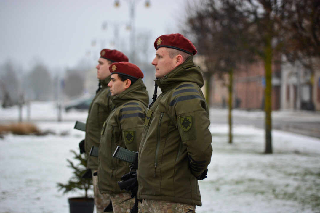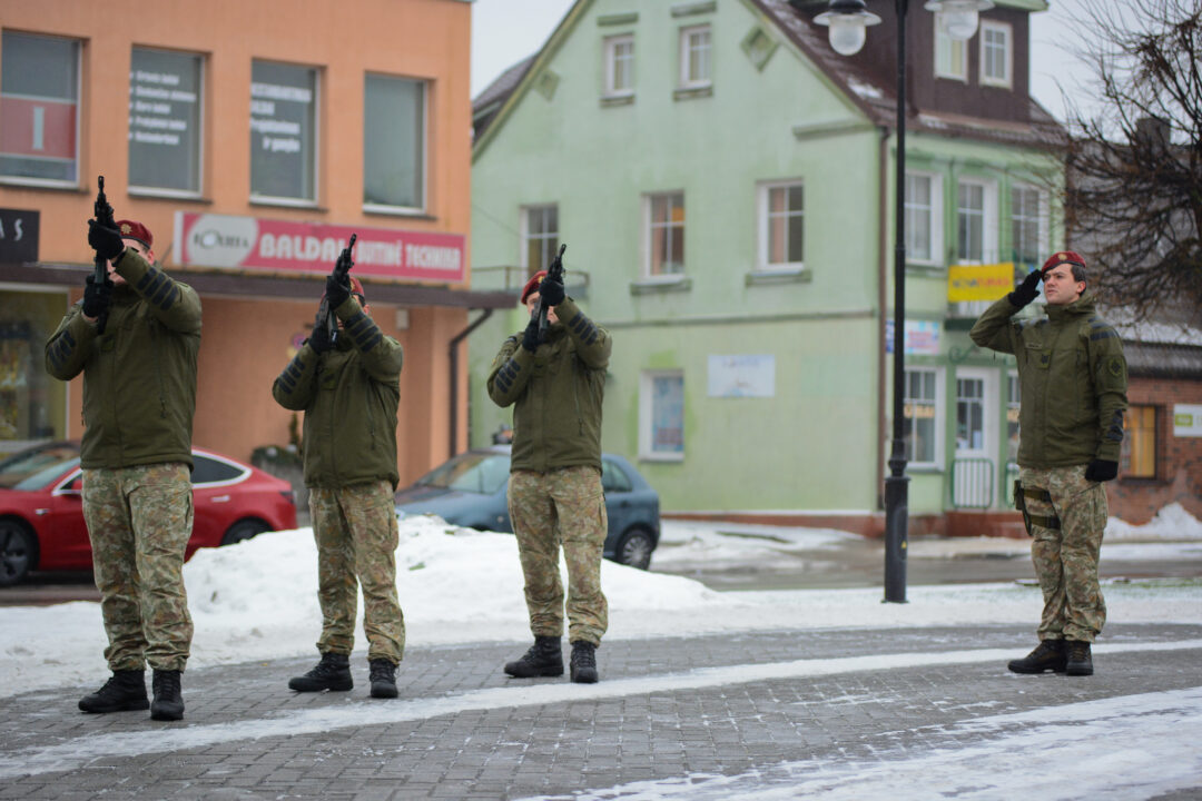 Sugiedojus „Tautišką giesmę“, Krašto apsaugos savanorių pajėgų Vyčio apygardos penktosios rinktinės 506-osios kuopos kariai iššovė pagarbos salvę: pirmasis šūvis už Lietuvos valstybę, antrasis – už jos žmones, trečiasis – už žuvusius ginant tėvynę ir nepriklausomybę.