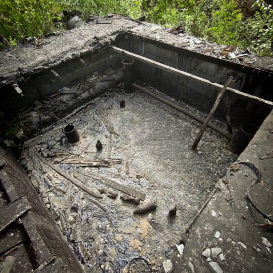 0,2 ha teritorija – sovietinis palikimas. Dabar ją supa AB „Panevėžio keliai“ filialo gamybinė teritorija. 1960–1996 m. čia veikė asfaltbetonio bazė su itin toksiškų naftos darinių saugykla – bitumo krosnimi ir penkiomis bitumo talpyklomis: viena, didesnioji, maždaug 2000 kv. m talpos, buvo įleista į žemę; keturios mažesnės, maždaug po 20 kub. m talpos, – antžeminės.